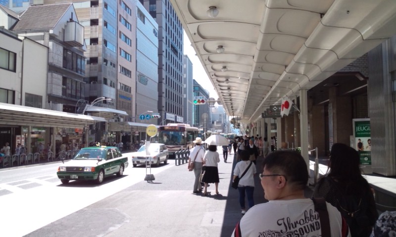 あっつい日光が広くなった道に降り注ぐため、ほとんどの人が以前のように昔の歩道の幅の中で歩いていました。