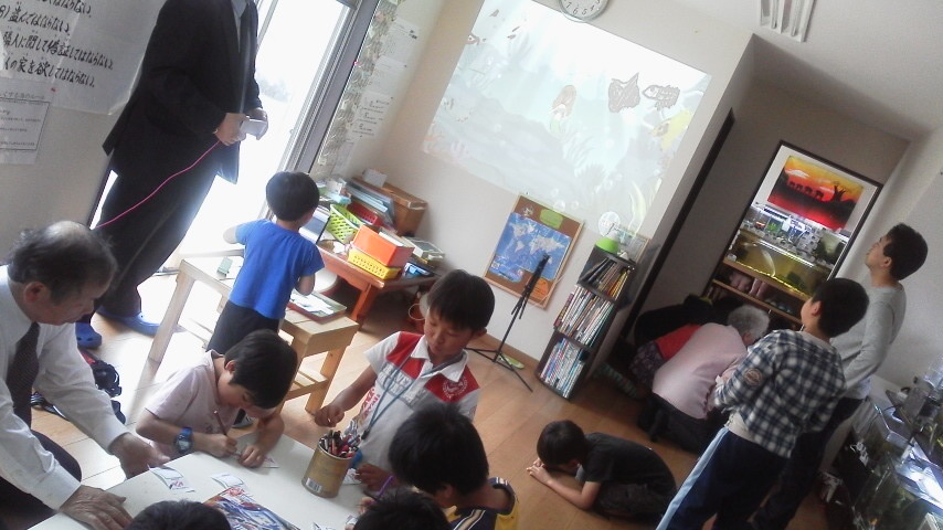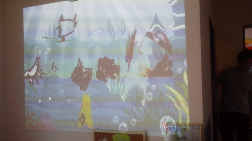 花園教会水族館にいるオサカナを子ども達に模写してもらい魚をスキャン!