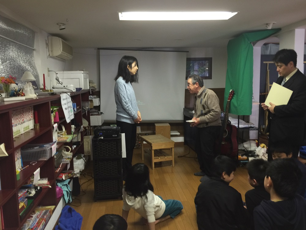 子ども会の教師たちの代表としての贈る言葉とプレゼント。
