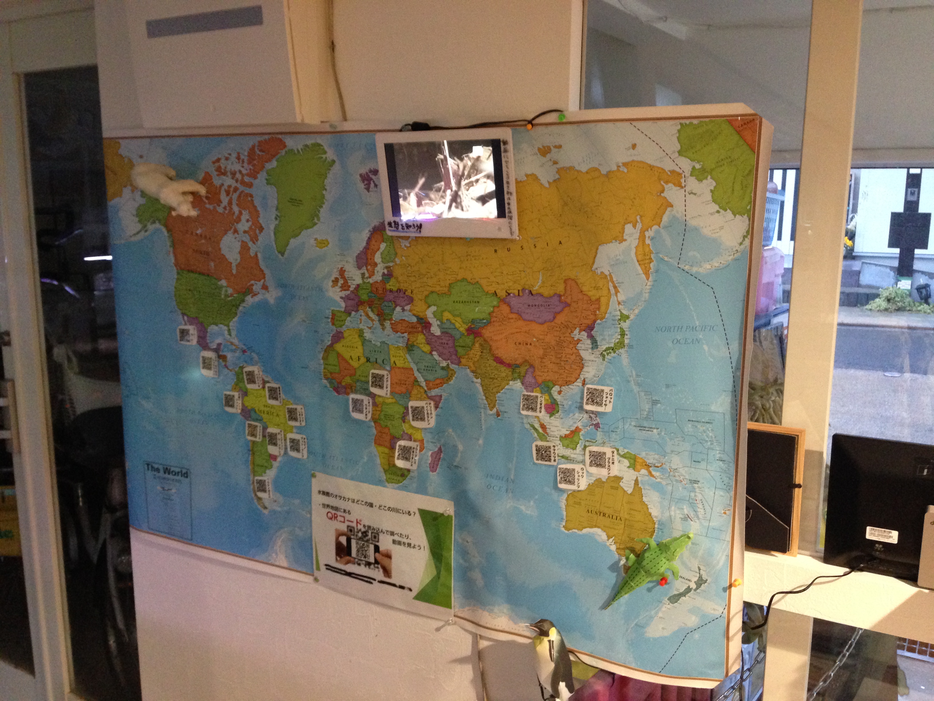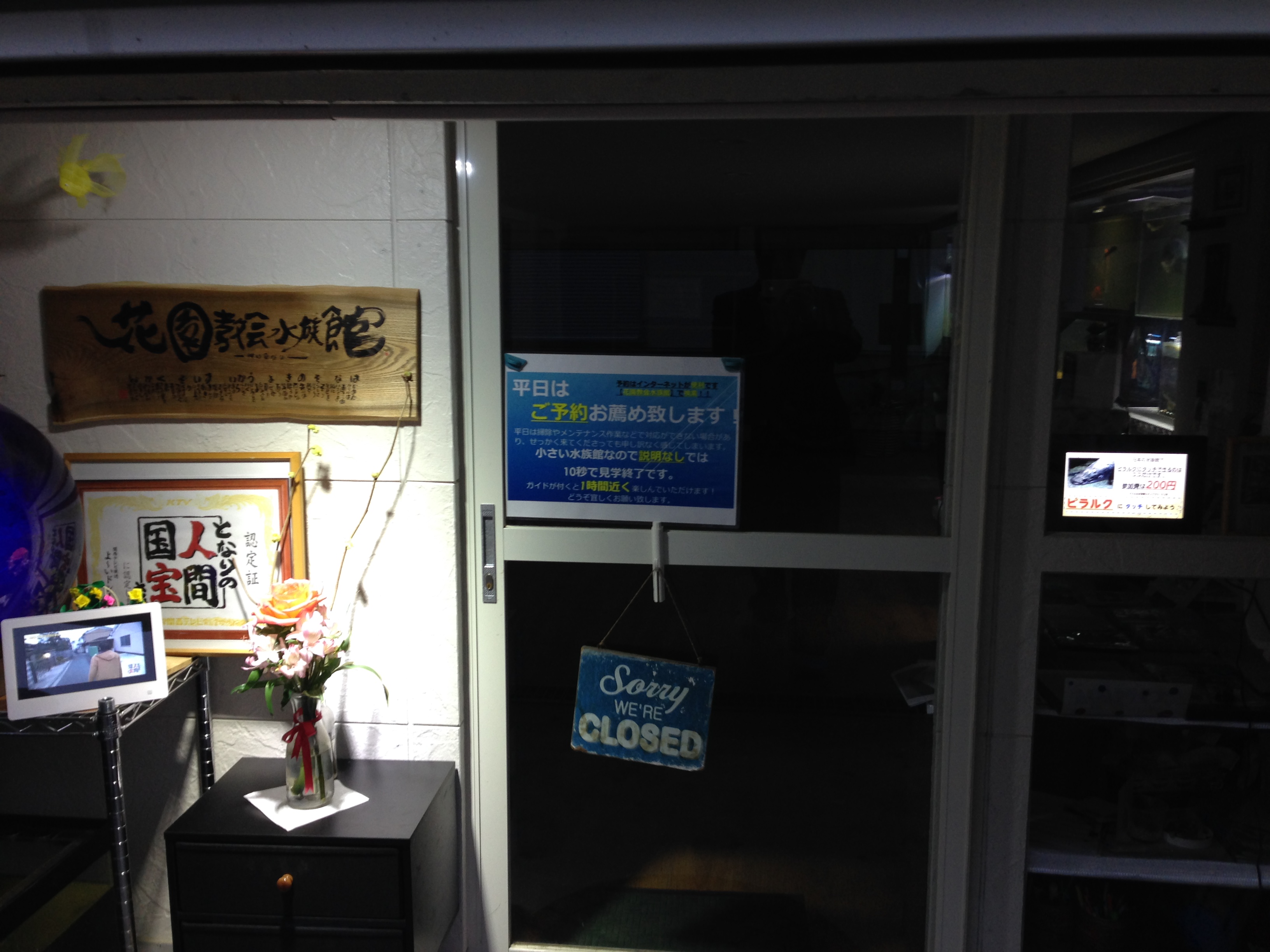 ひとつは水族館玄関に紹介映像と写真をディスプレイ!