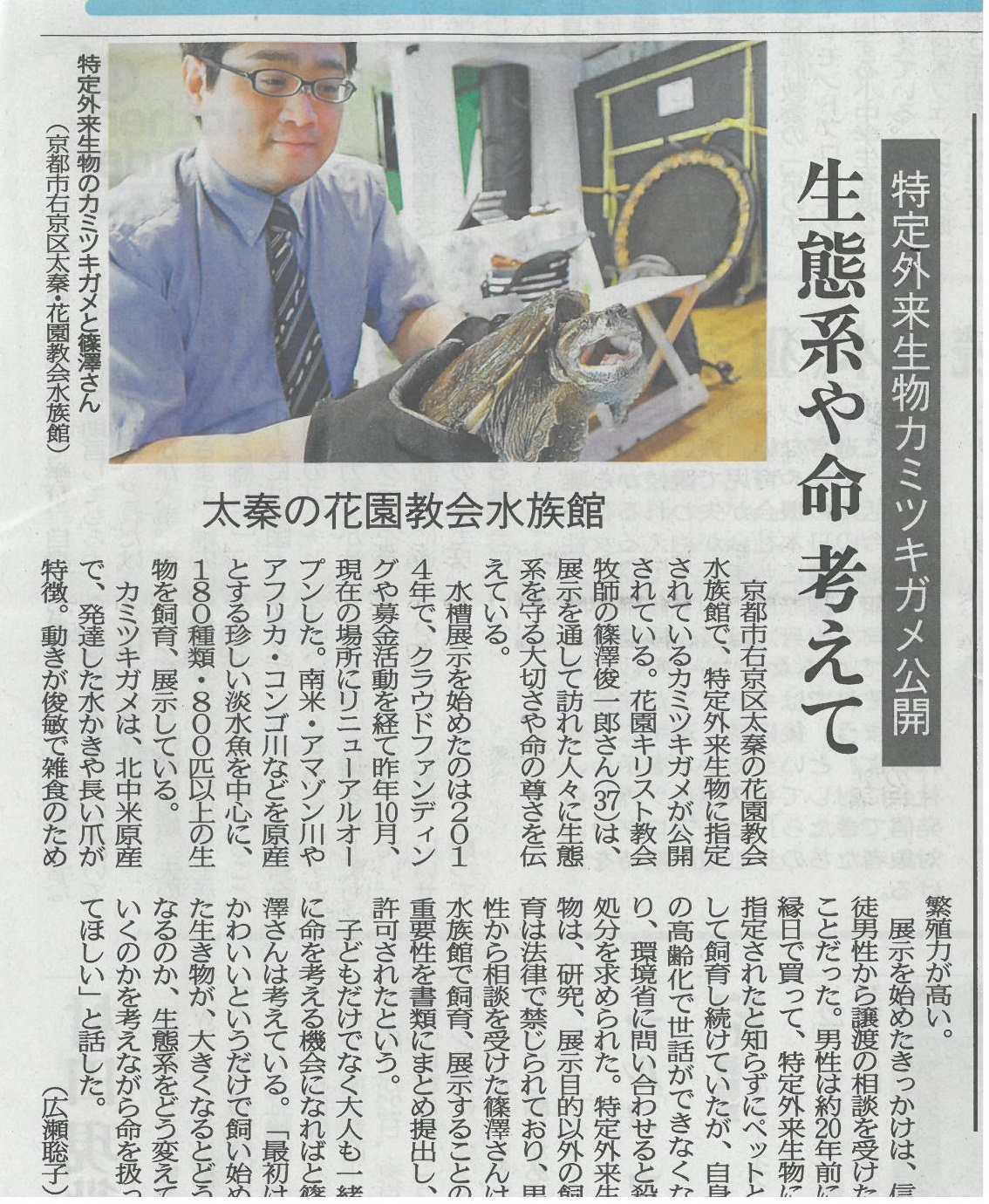 【カミツキガメ公開、生態系考える 京都・花園教会水族館】