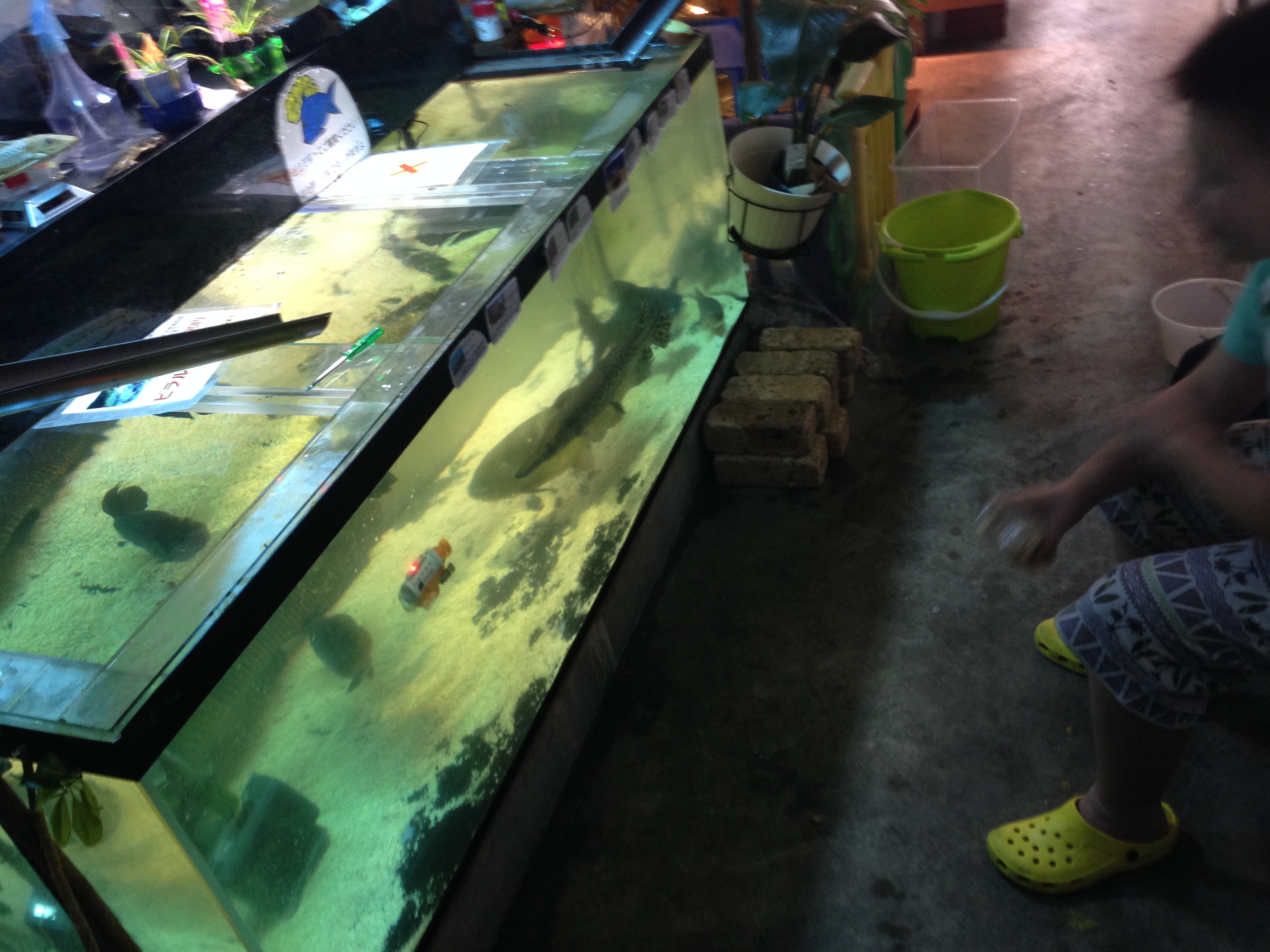 狙いはカメラとVRゴーグルとを組み合わせて、実際にその水槽空間で操縦しているようにしたかったのですが、思いのほか、水中ラジコンの推進力が低く、今回は導入をあきらめました。