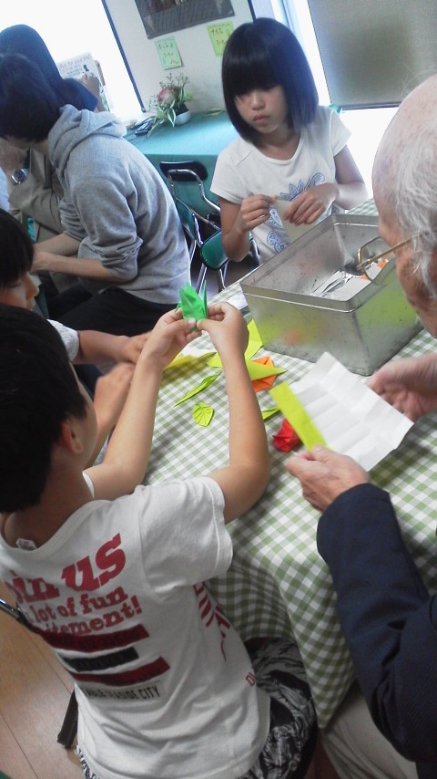 それらを作っている教会のおじいさんの折り紙教室が急遽行われました!