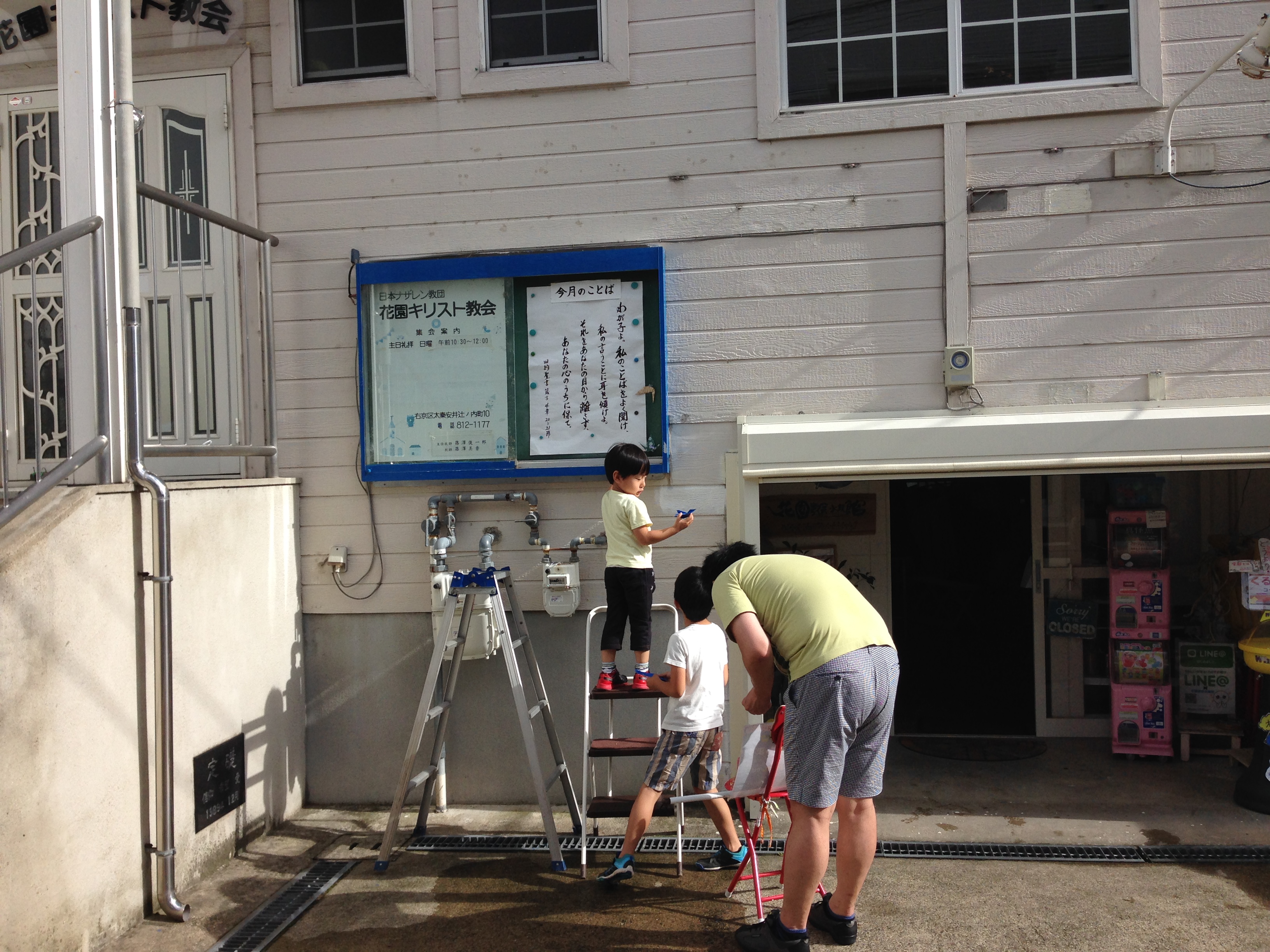 子ども会の子どもとそのお父さんが、教会の看板にどうぞ!という事で折り紙を持ってきてくれました!