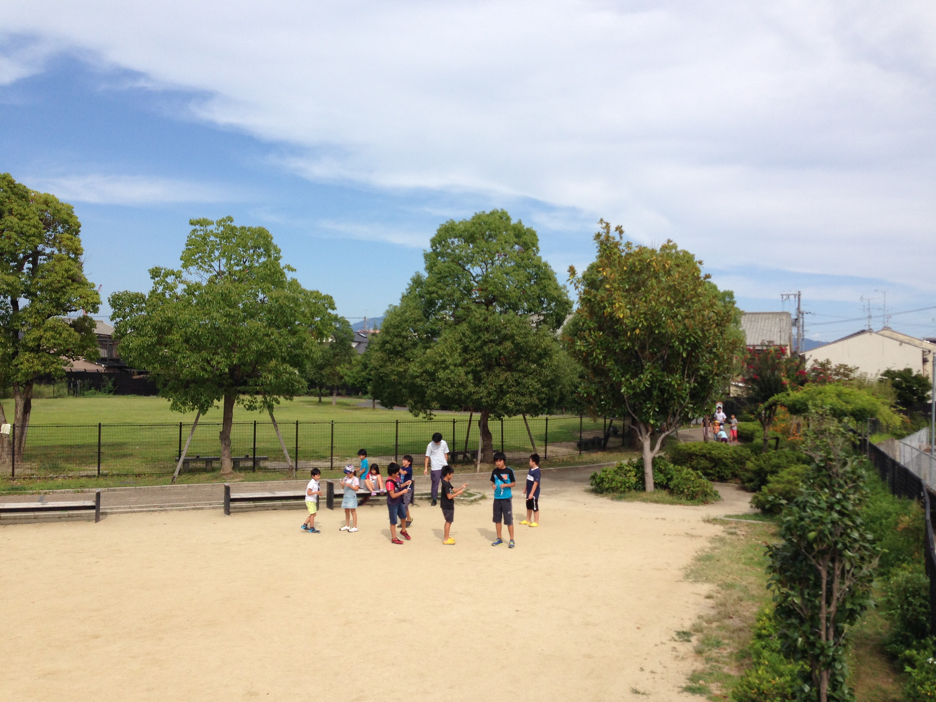 公園でみんなで飛ばし大会です。