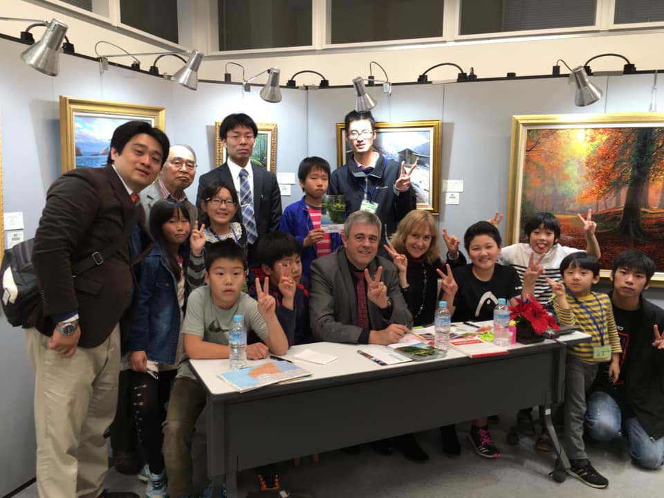 子どもたちは大変興奮し、絵を堪能し、自分たちで折った折り紙を来日されているルビオ画伯にプレゼンしていました。