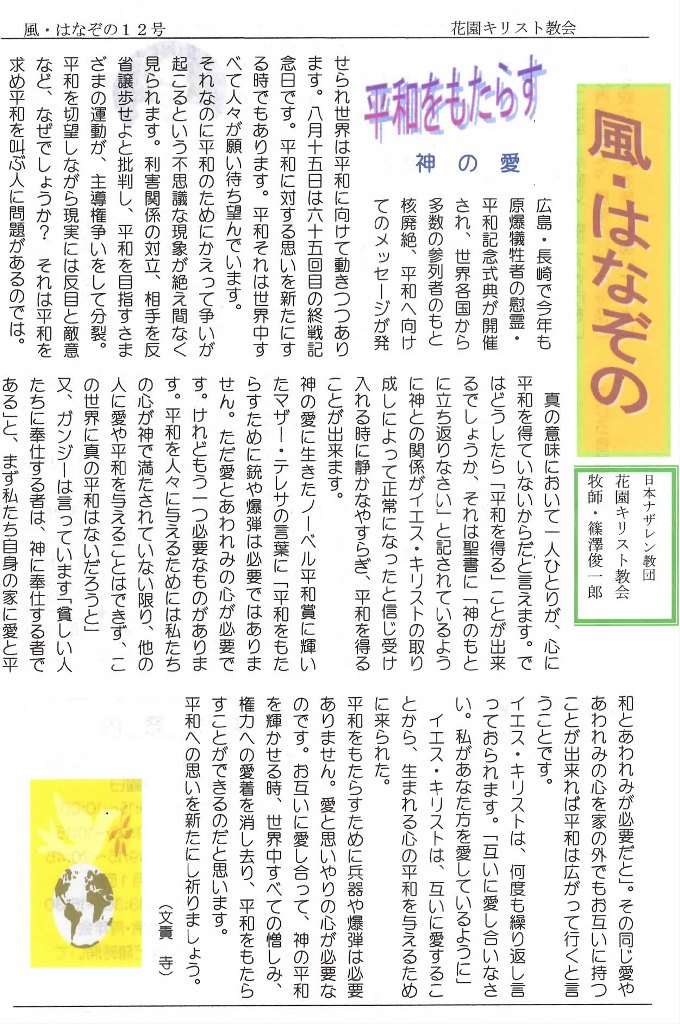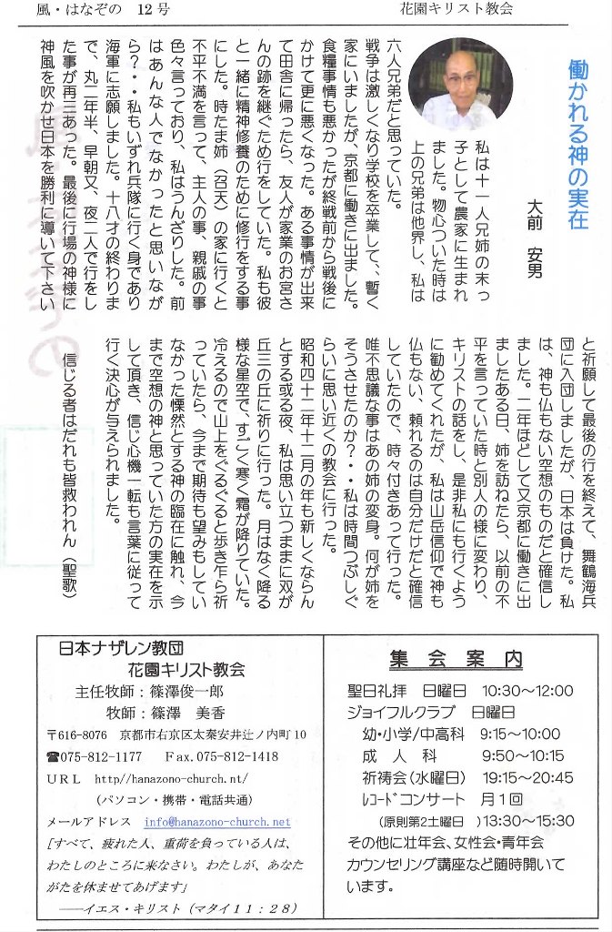 http://kyotohana.blog.shinobi.jp/Entry/323/夏号―「風」(花園教会機関紙) 発行しました~!