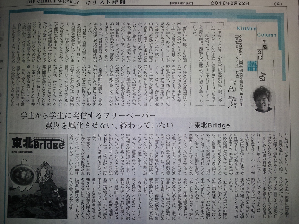 「キリスト新聞に東北ブリッジの記事が載りました!」