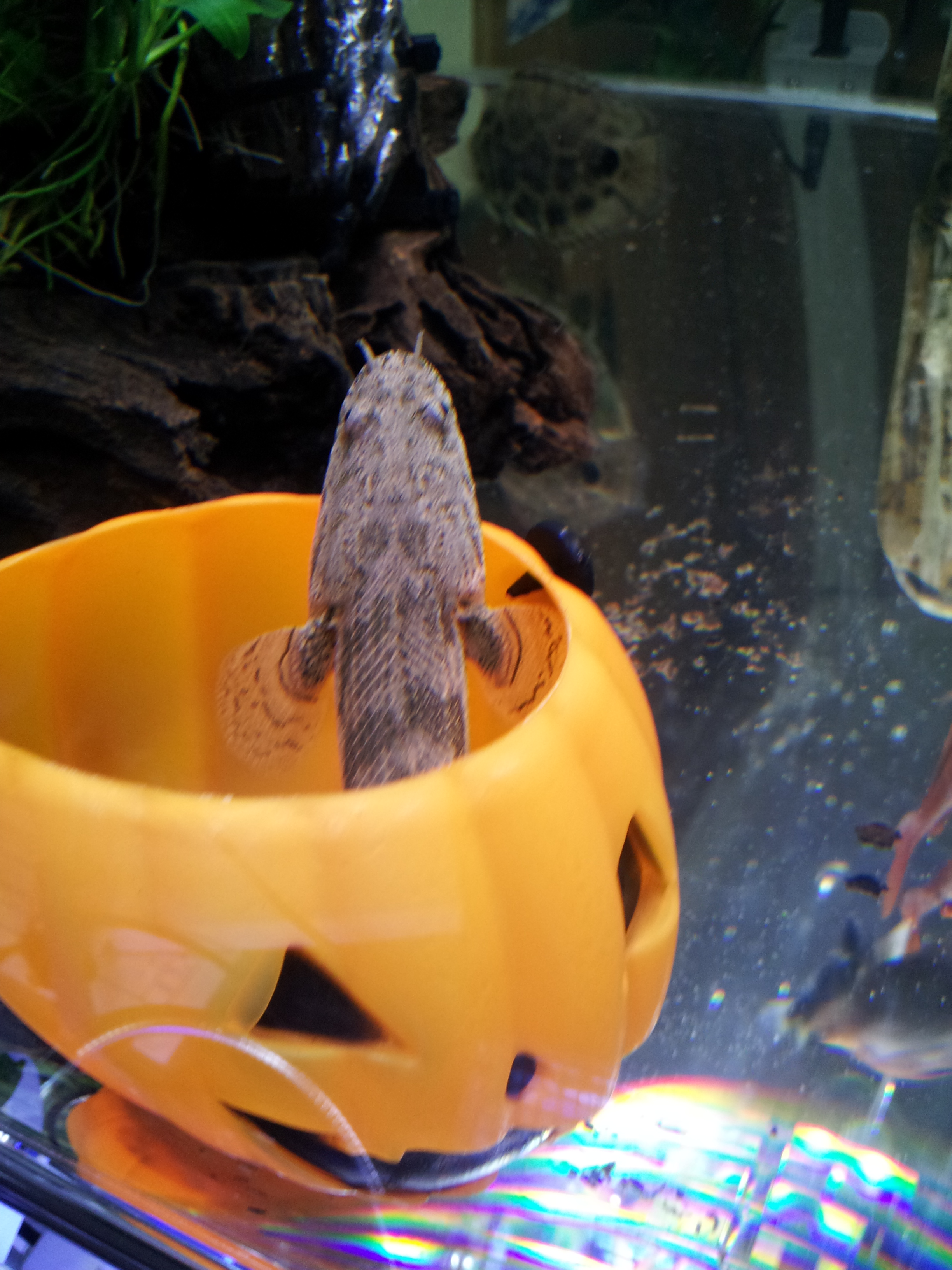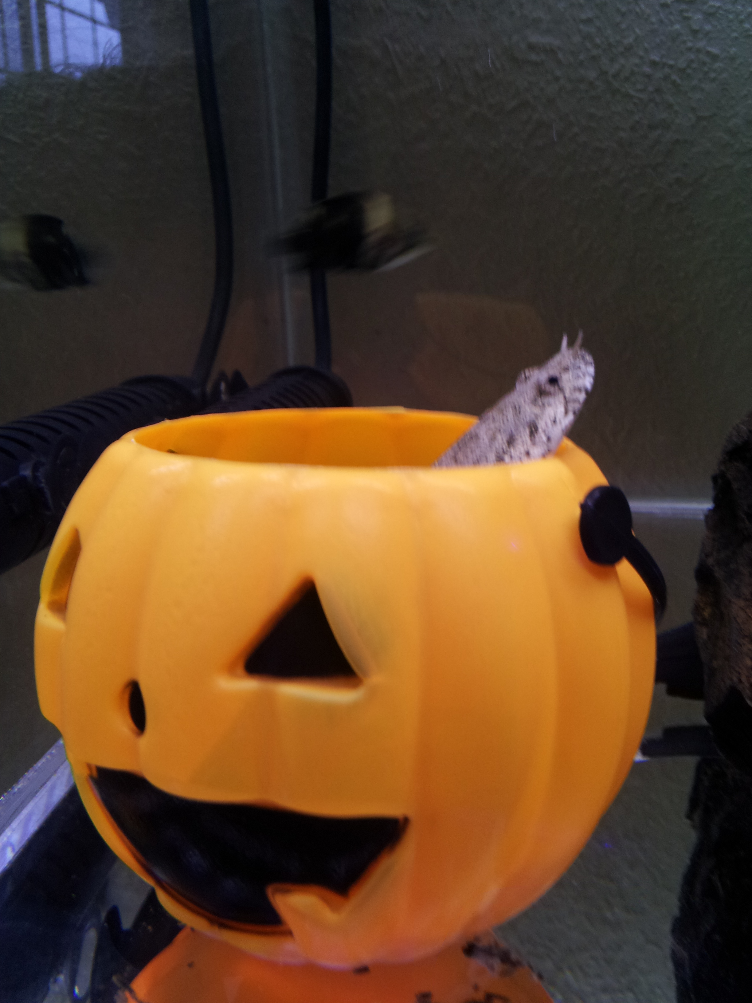 ともあれうちのエンドリケリーは、ハロウィンのかぼちゃが大好きでよく頭を出しています。