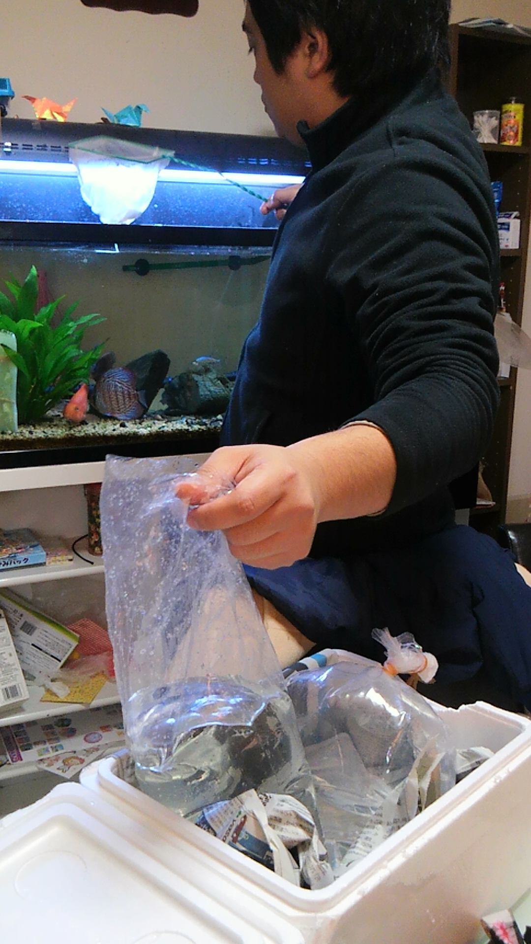 花園教会にいるとても綺麗なおサカナを袋づめ