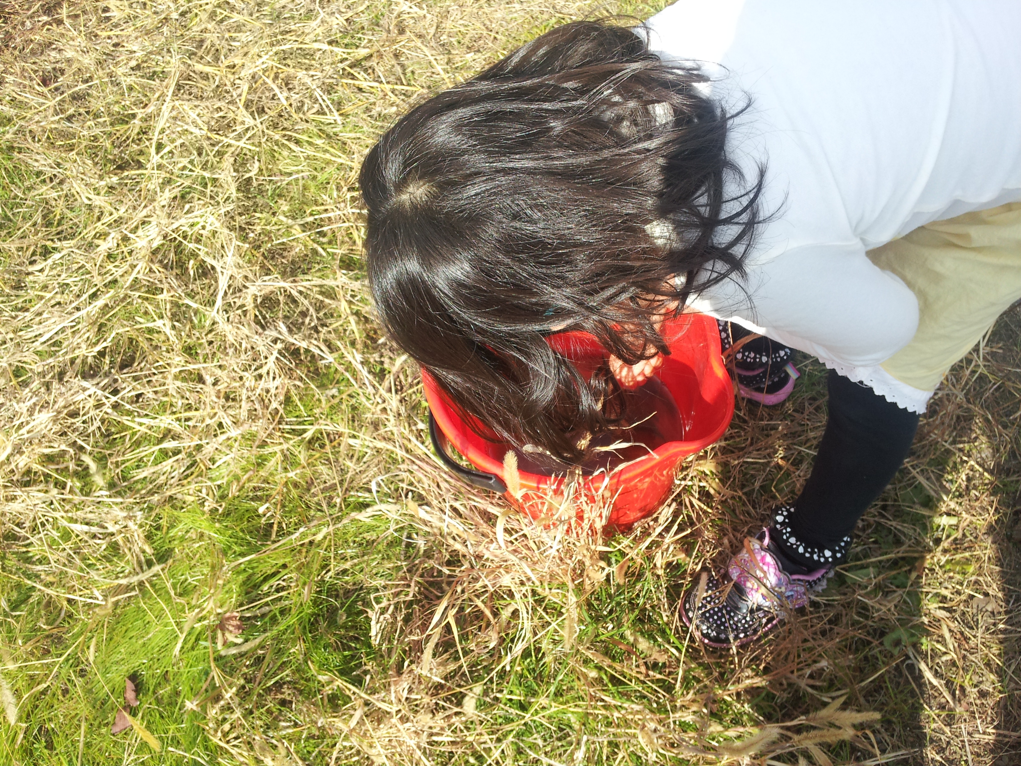 ②そして取り除き終わったら、平らになるようにプラスチック容器を置きます。