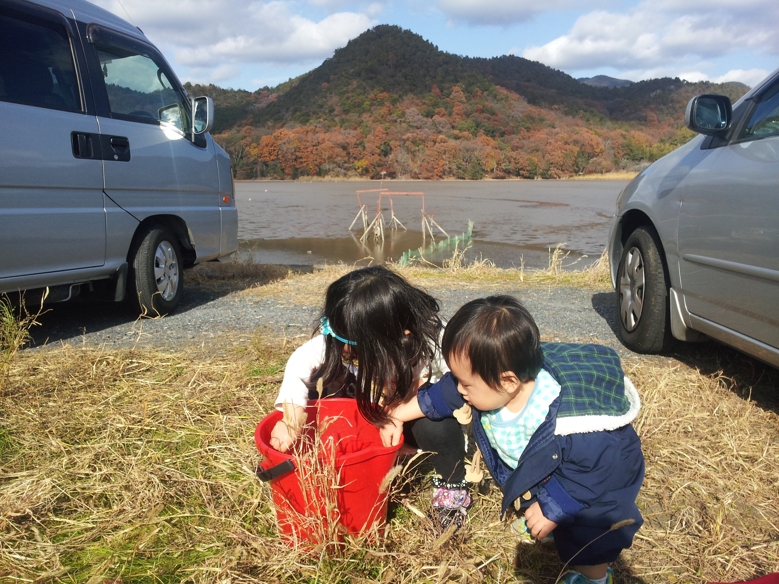 早速、鯉上げ当日に子ども達をつれて広沢池にゴー!!