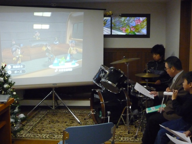 現在、教会学校では来週のクリスマス祝会のWii musicを使った曲の練習をしています。