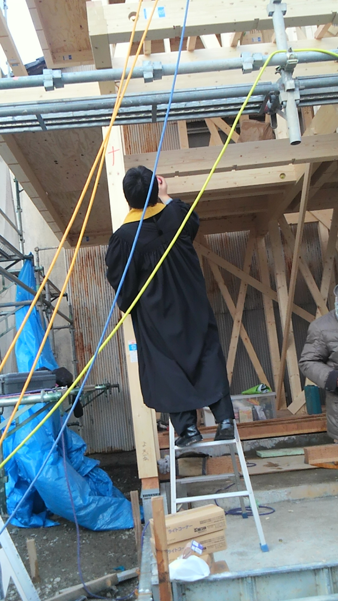 朝7時から急ピッチで上棟式のために作業が行われました。