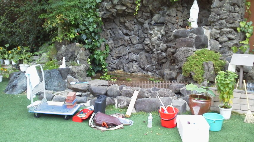 水槽メンテナンス「今回はルルドの洞窟!!」:ボランティア>>