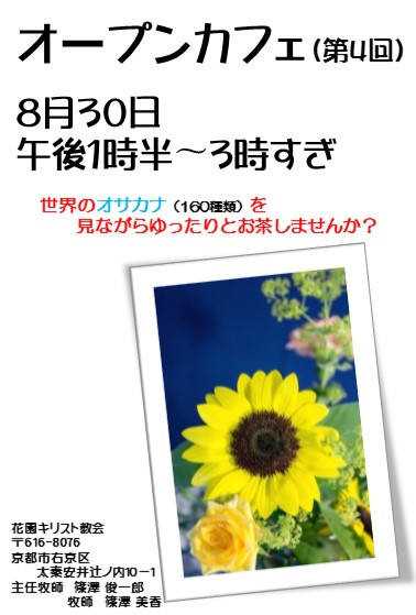 明日のオープンカフェは、昨年のオープンチャーチの一環で行われているイベントで、
