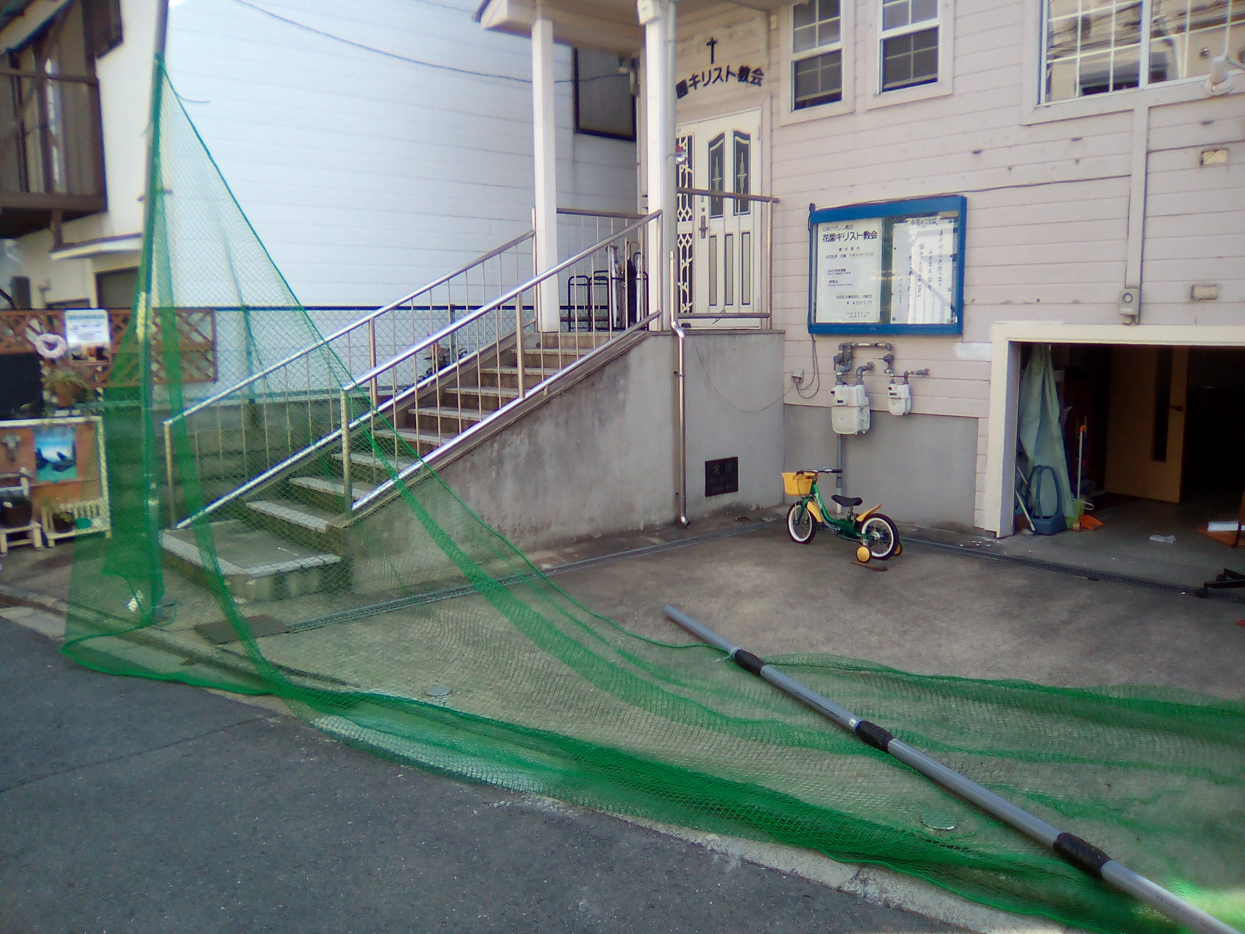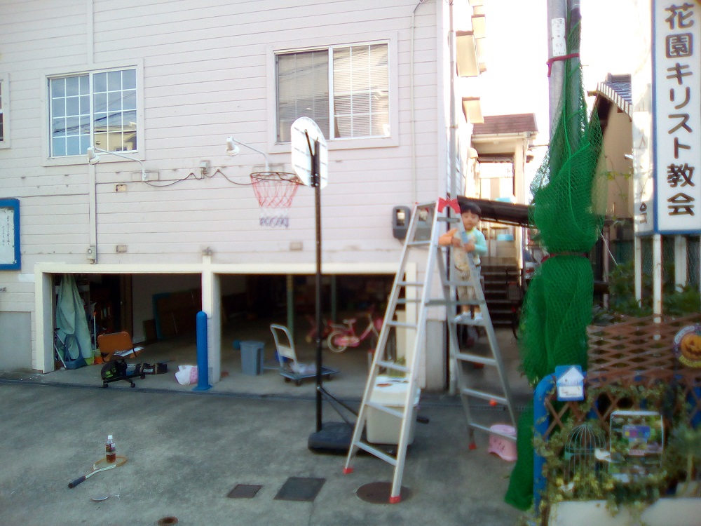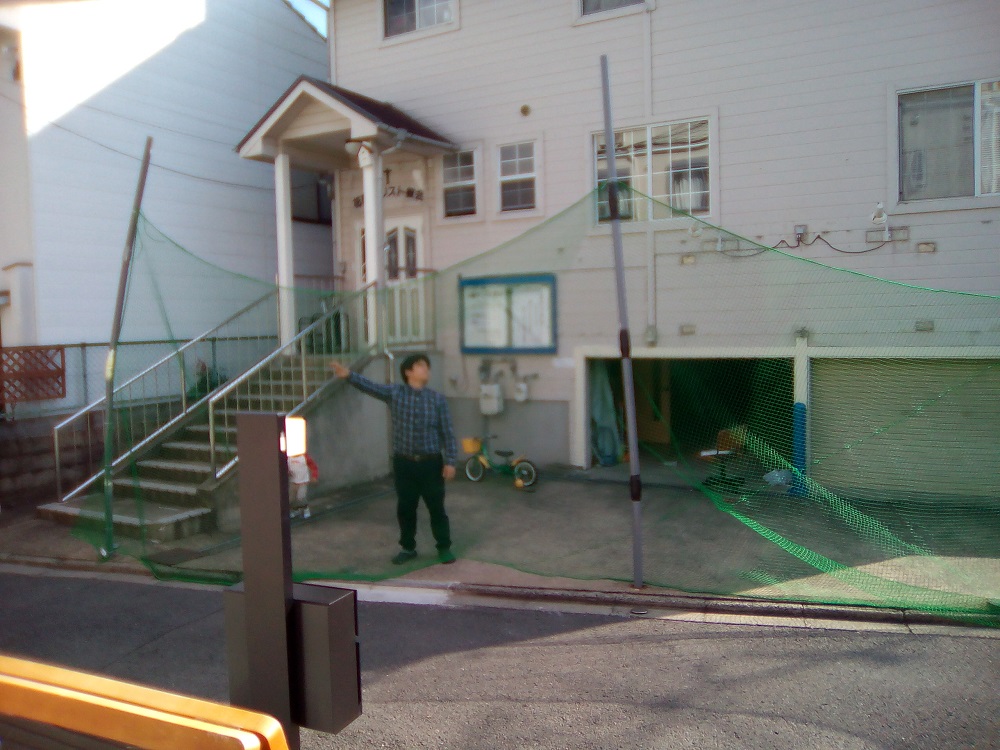 ボールで遊ぶのはいいのですが、教会と聖パウロ館との間は市道なので、