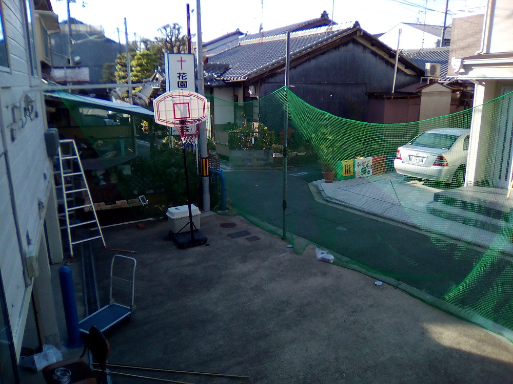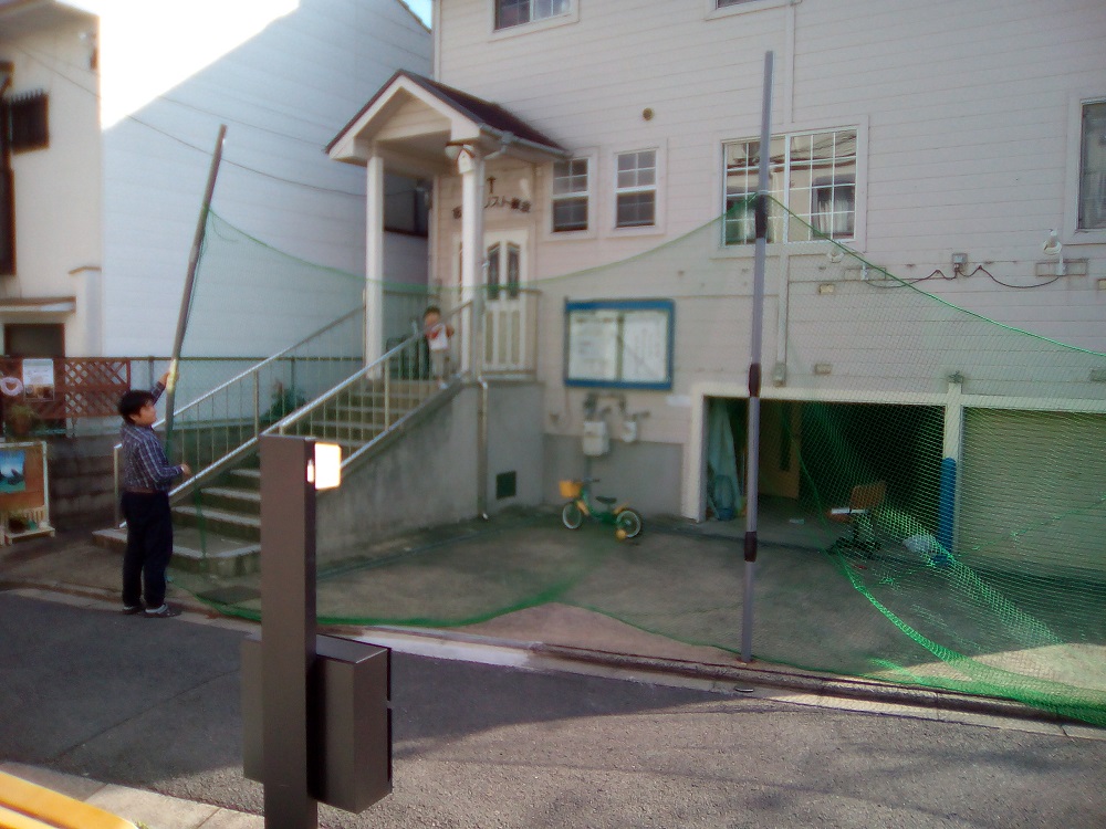 しかし、ここには車も駐車するので、常時ネット張るわけにはいきませんから可動式です。