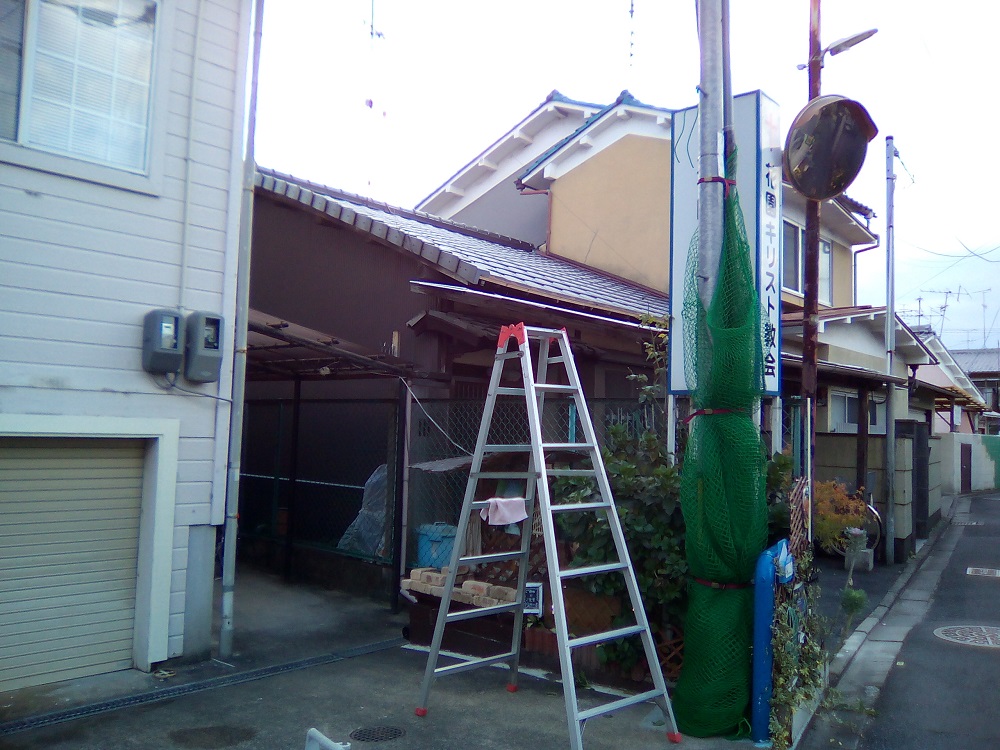 10m×4mのネットを蓋の支柱にあった棒を買ってきて、、、というよりは自分で作って、張り付けていきます。