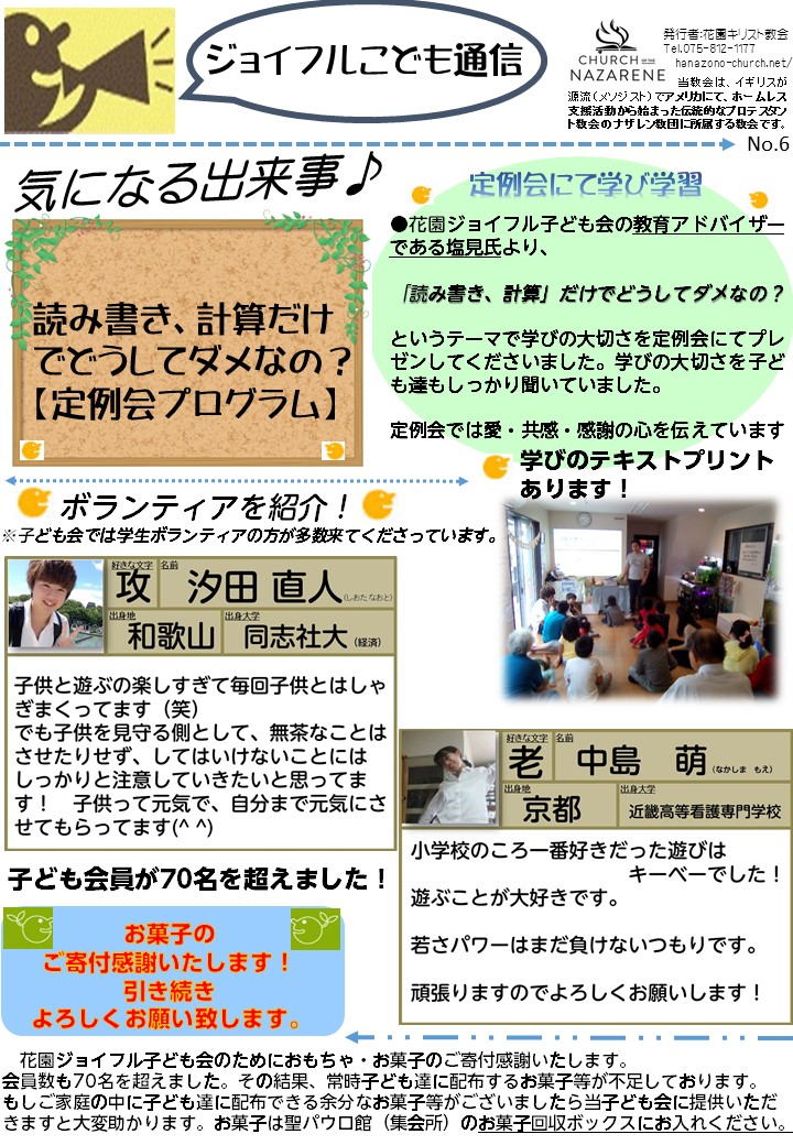 ジョイフルこども通信 電子版 ができましたのでアップします。