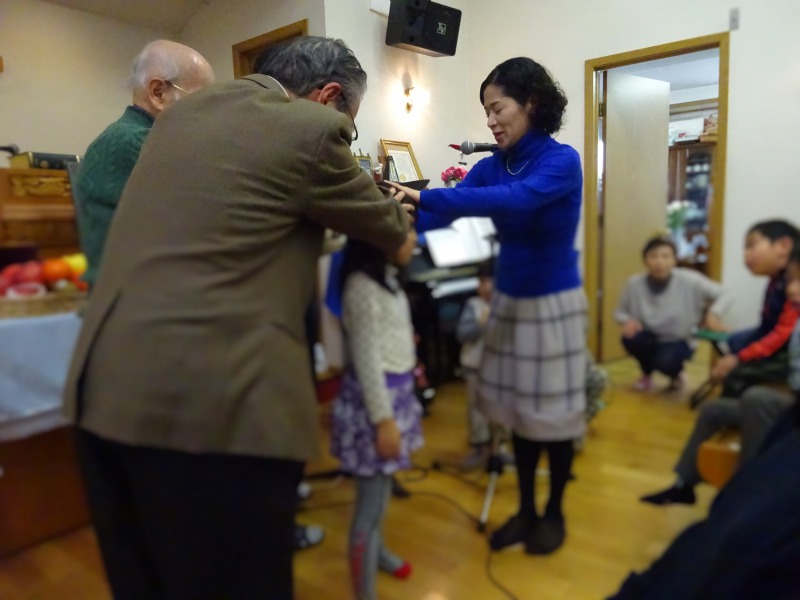 という事で、ひとりひとり果物・野菜を持ってくることになっていてそれを祝福し、お昼みんなでいただきました。