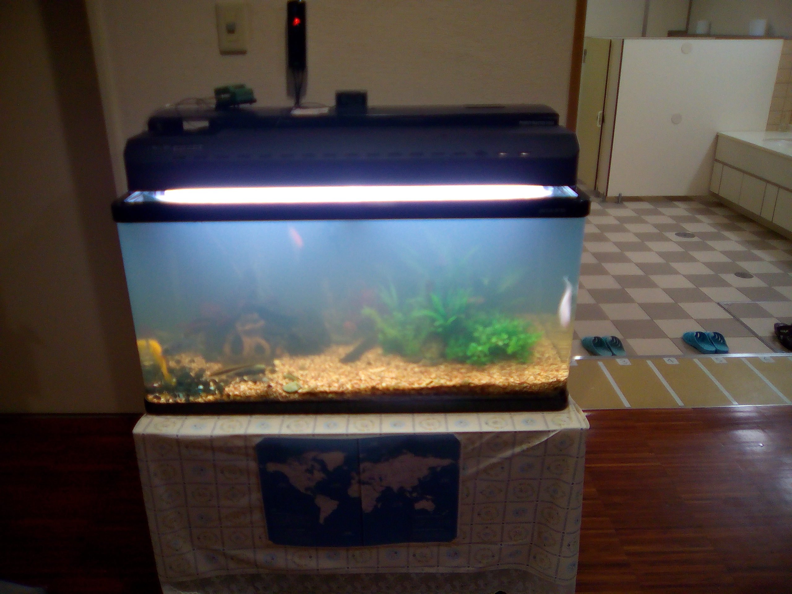 さすがに立ち上げたばかりの水槽は、水の水質が安定せず汚れもひどかったですが、