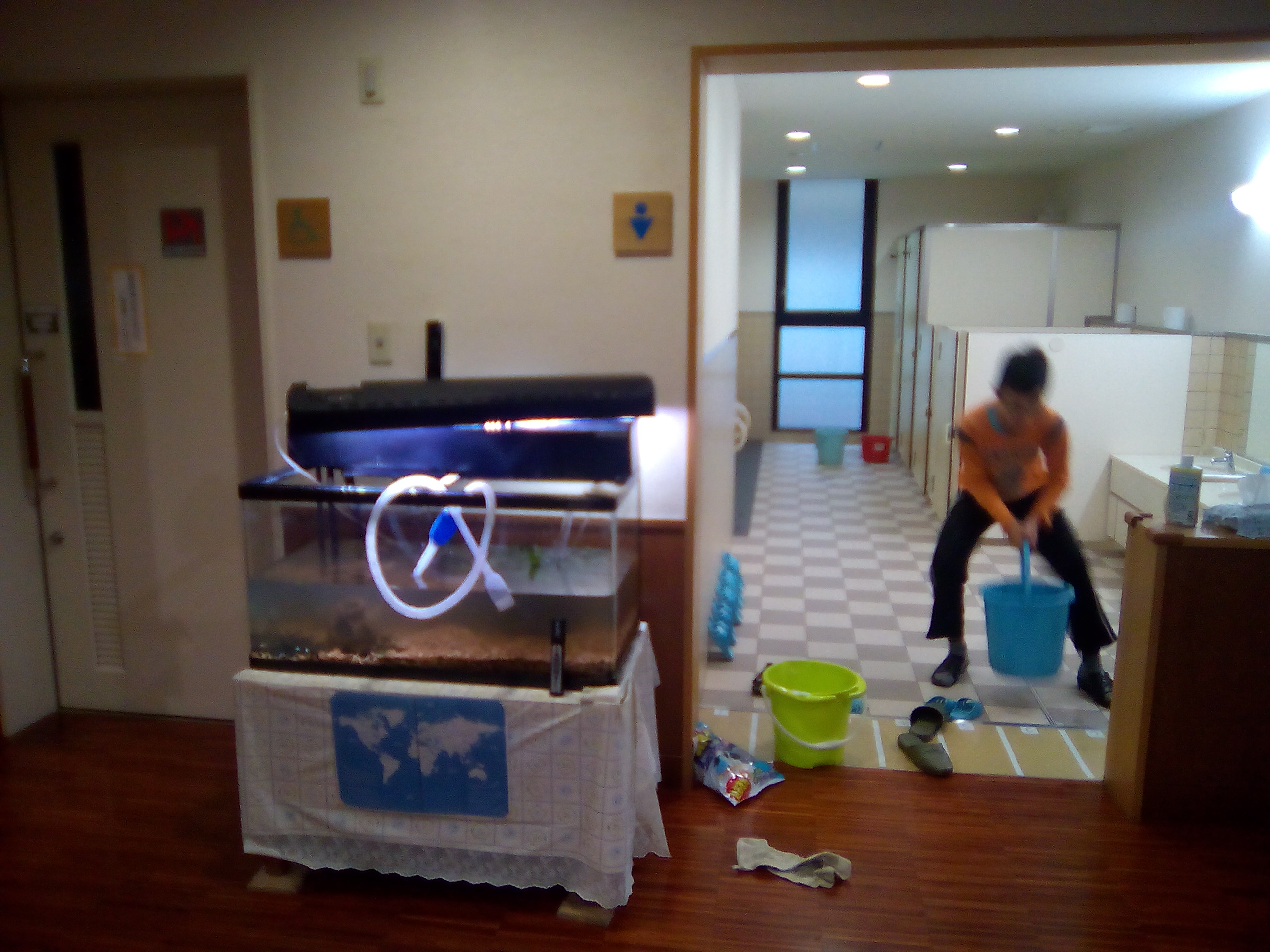 幼稚園の水槽メンテナンス