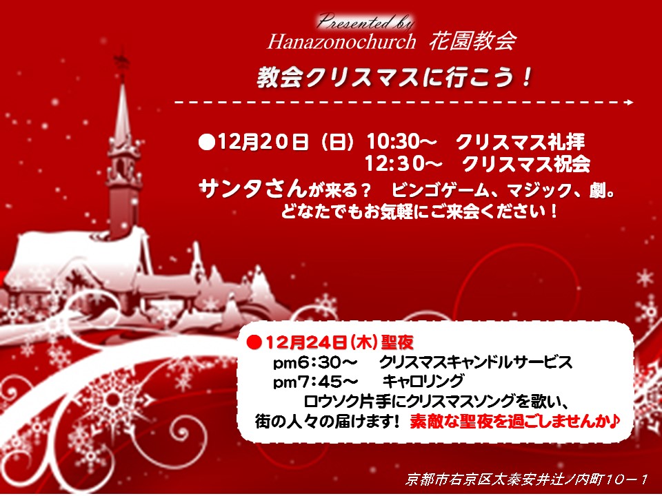 http://kyotohana.blog.shinobi.jp/Entry/1024/『信じる事の大切さを知らされたエピソード』とクリスマスのチラシのお知らせ