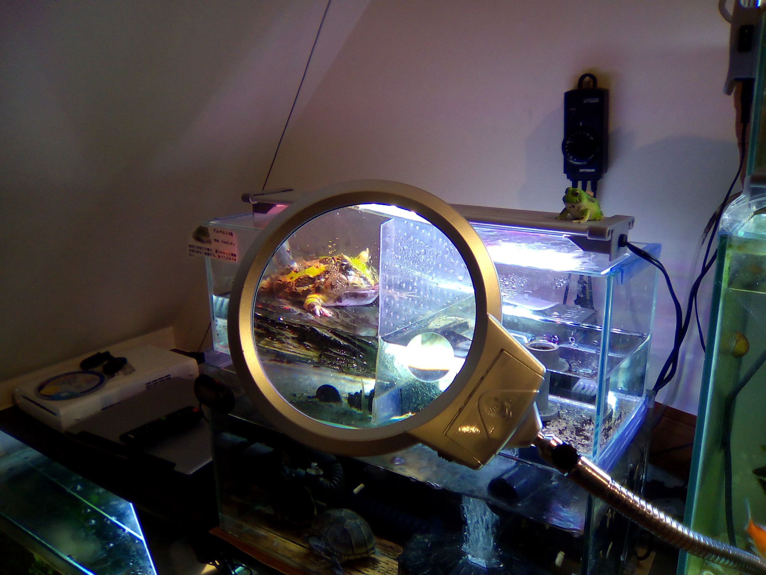 キモカワガエルくん(仮名)を虫眼鏡でみるととくに面白いですよ