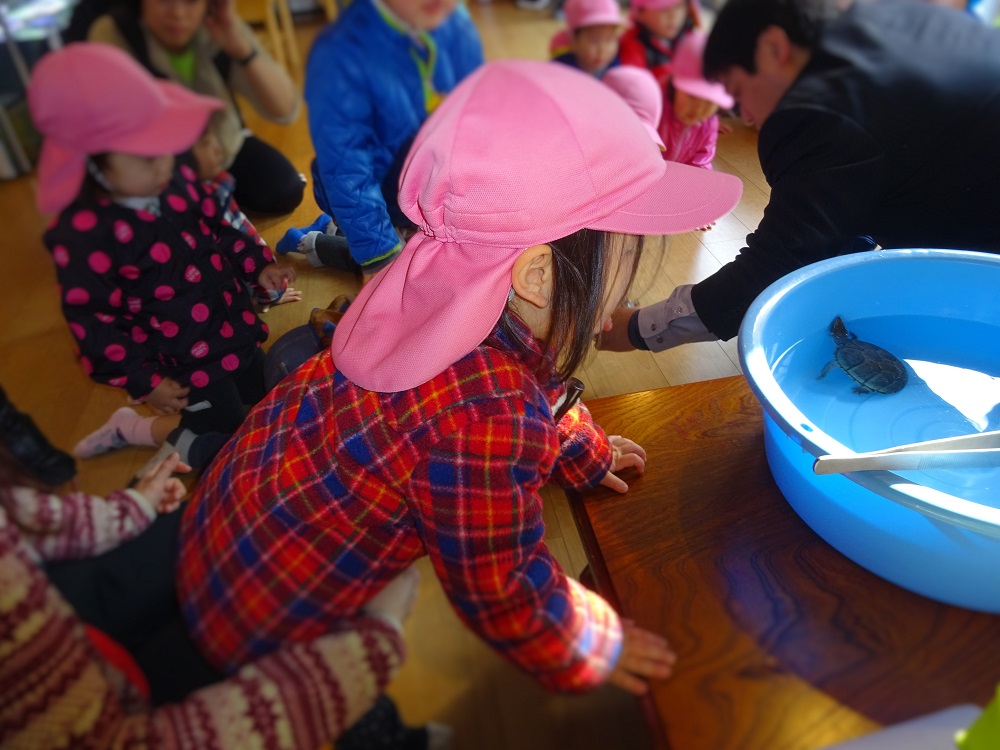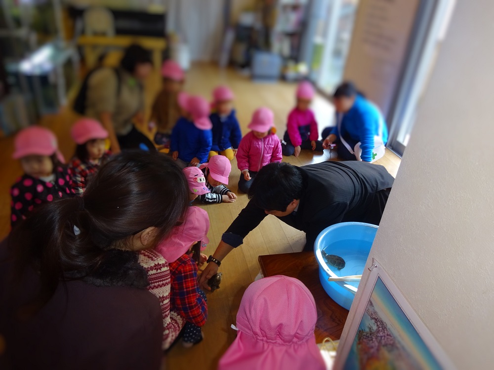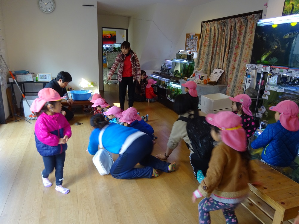 自分のあげたエサを魚が食べて、こどもたちも笑顔でした。