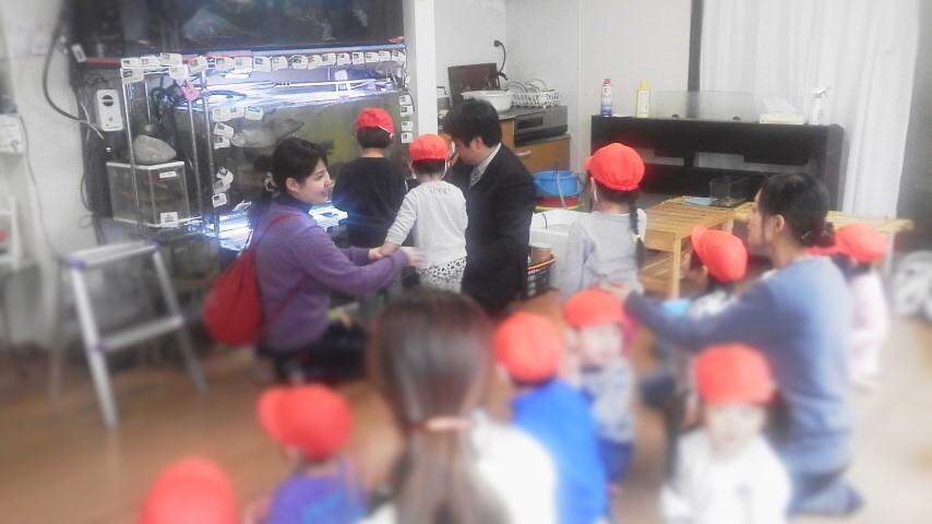 花園教会水族館には様々な生活環境の子ども達が集まり魚を観察しています。