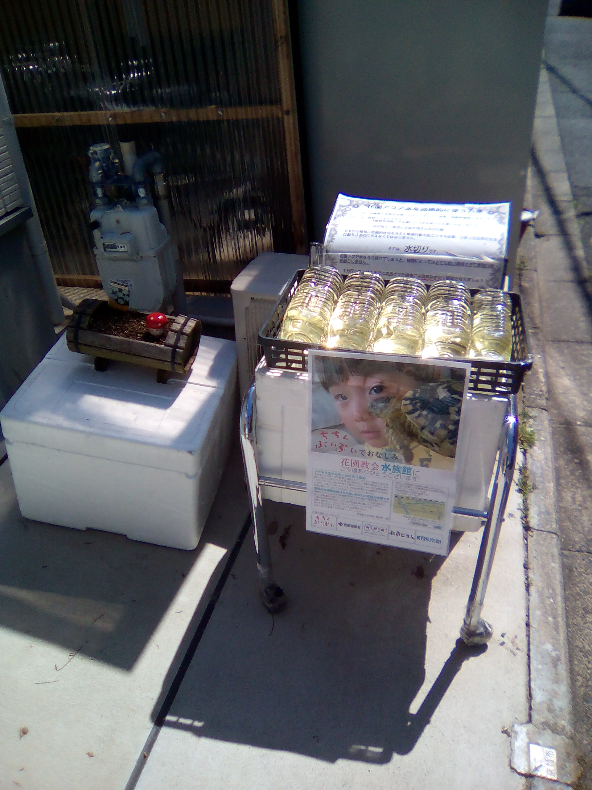 花園教会水族館では、近隣に無料で「花園アクア水」という水を配布しています。