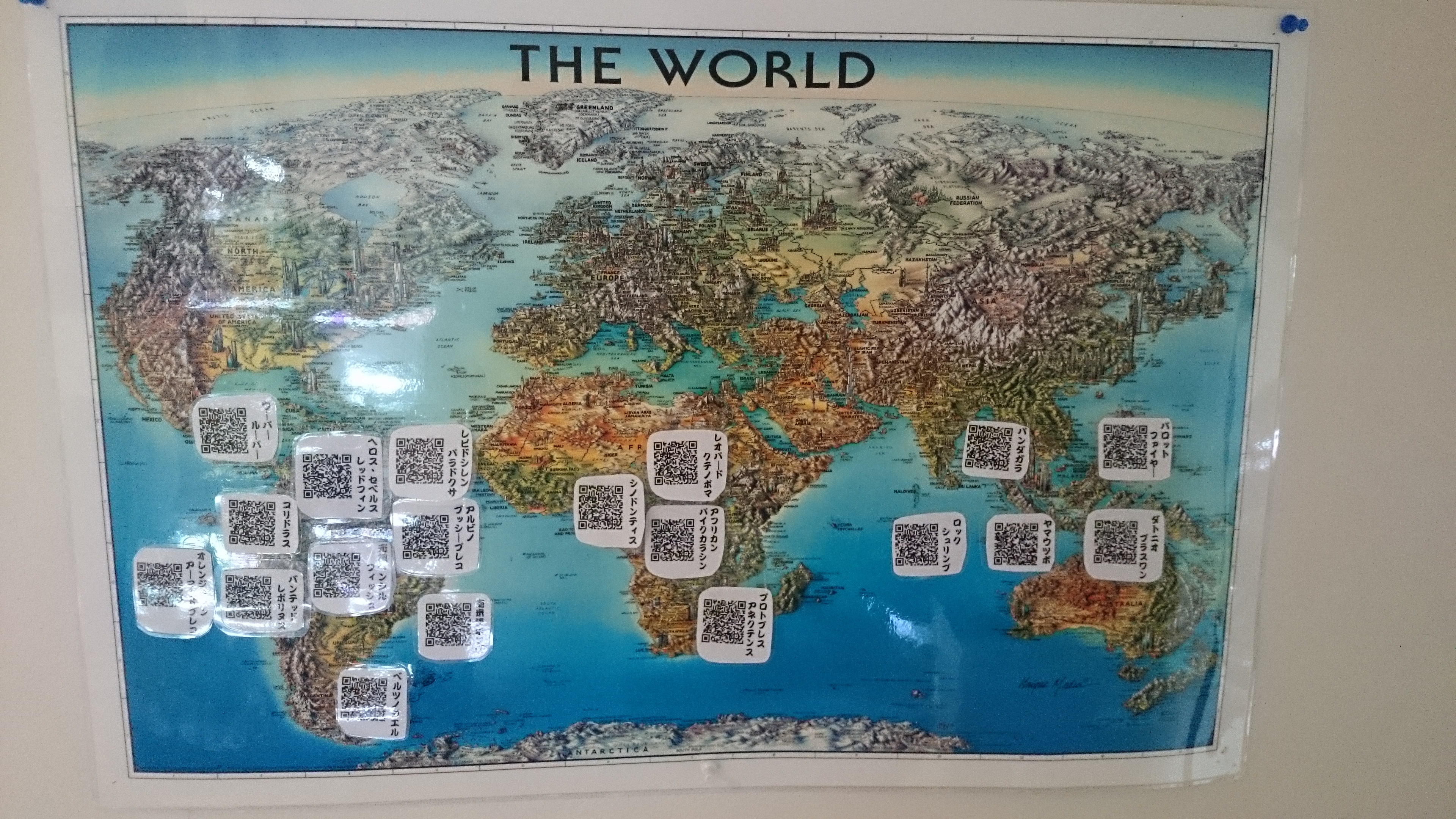 また水族館に世界地図が貼ってあり、その地図上のQRコードを