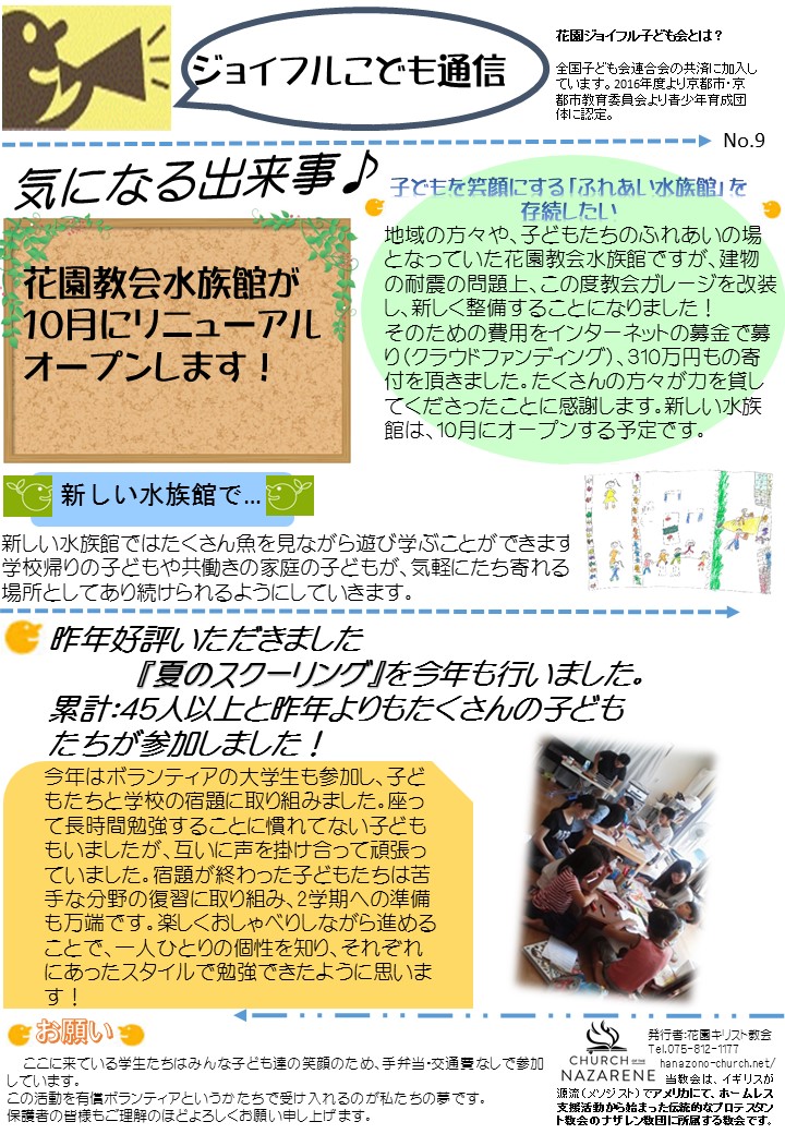 夏スクの様子は、保護者向け『ジョイフル通信』にも書いています。
