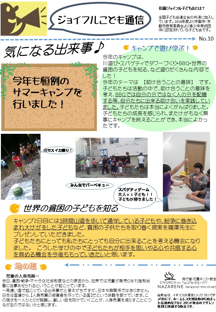 ジョイフル通信第10号が出来上がりましたので