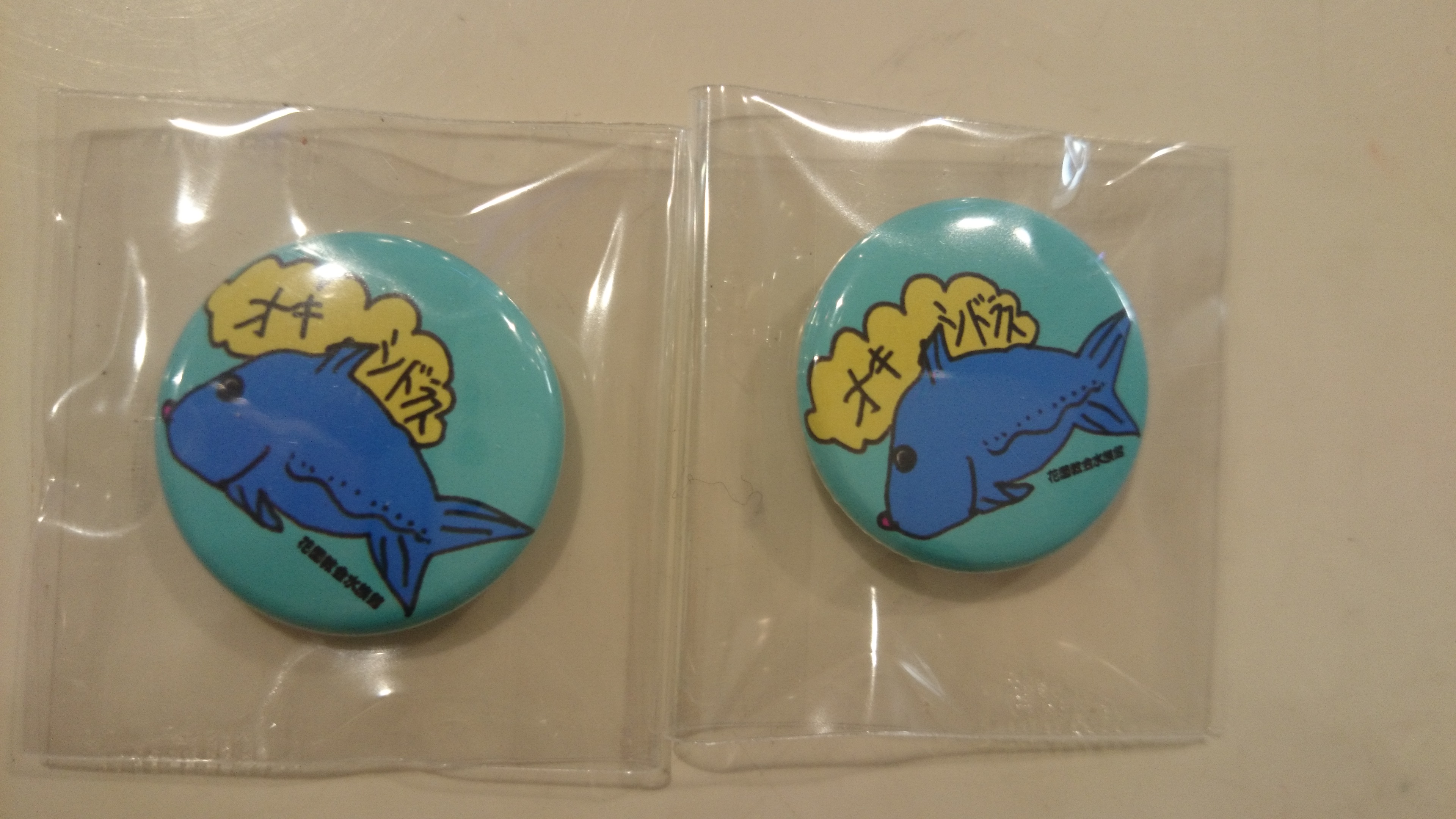 花園教会水族館にいる1mのオキシドラスを子ども達がイラストした缶バッチです。子ども達が書いてくれました。