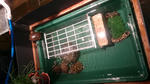 プラ舟の周りを木で囲み、カメが外に出られないようにフェンスを設置。