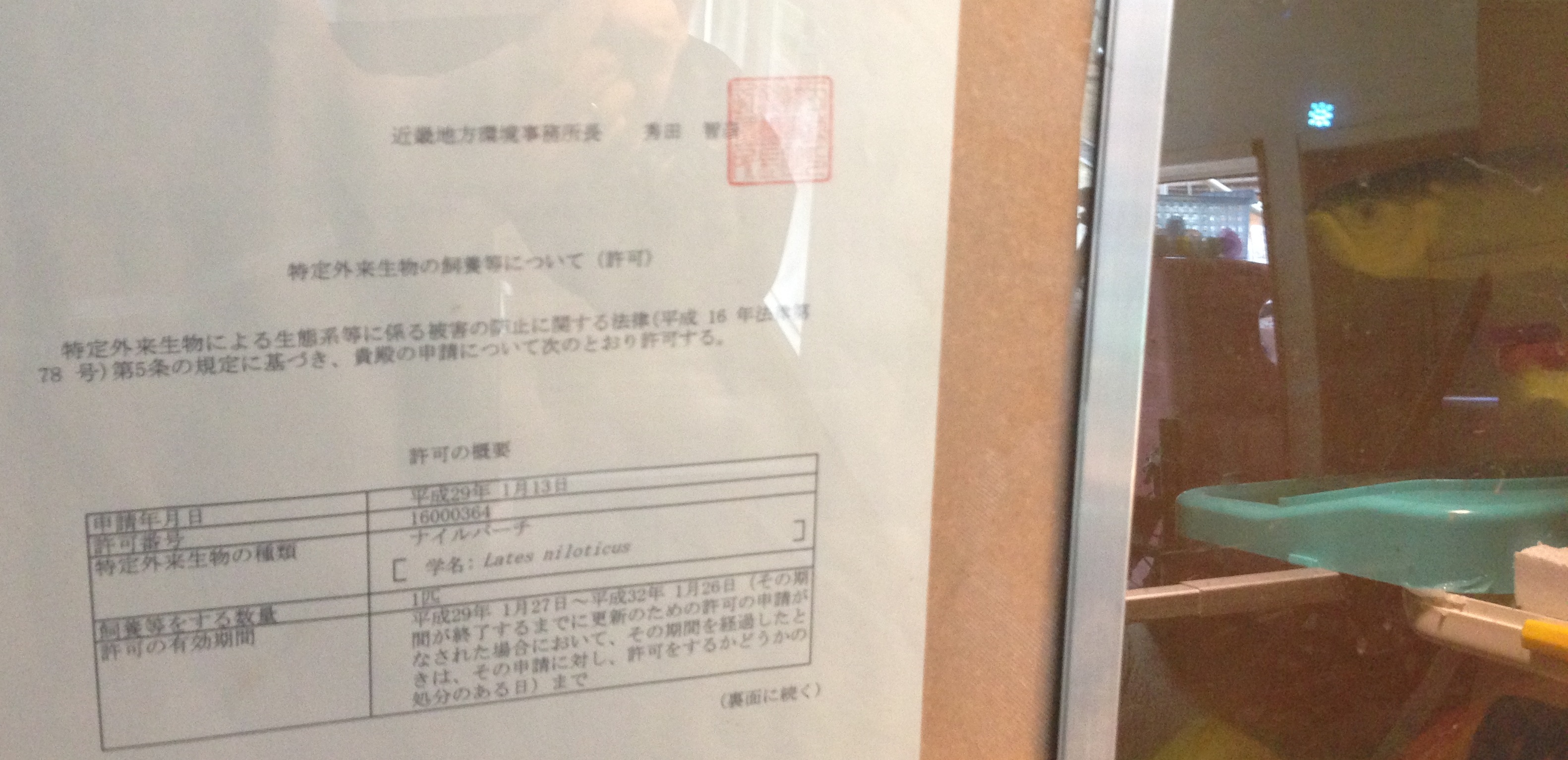 特定外来生物ナイルパーチの飼養許可をいただきました!
