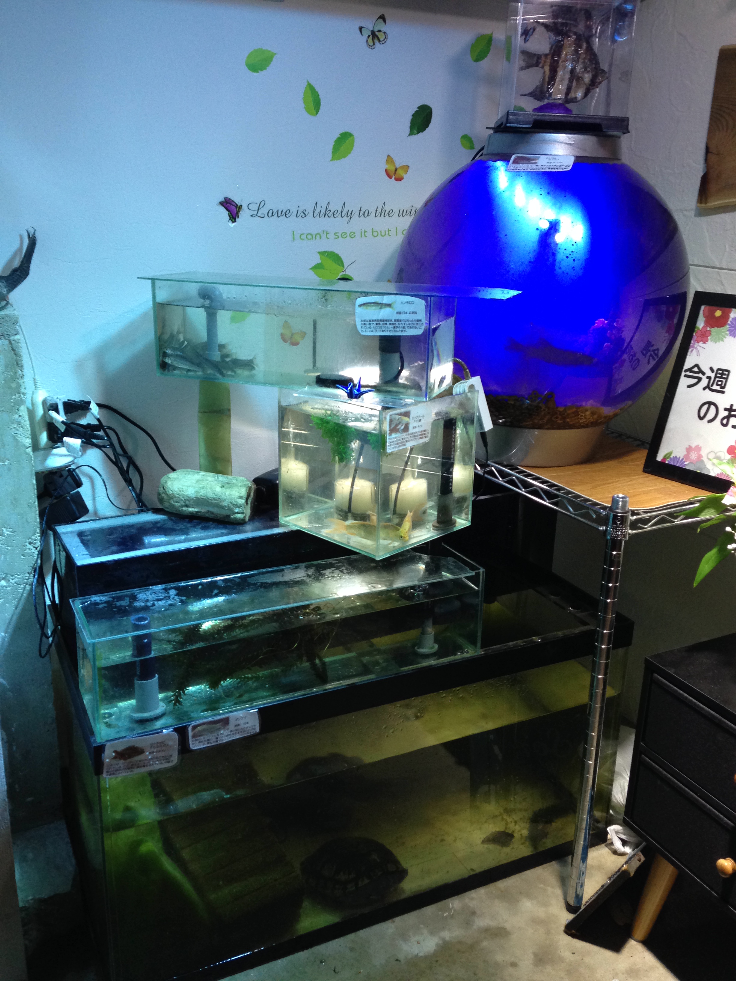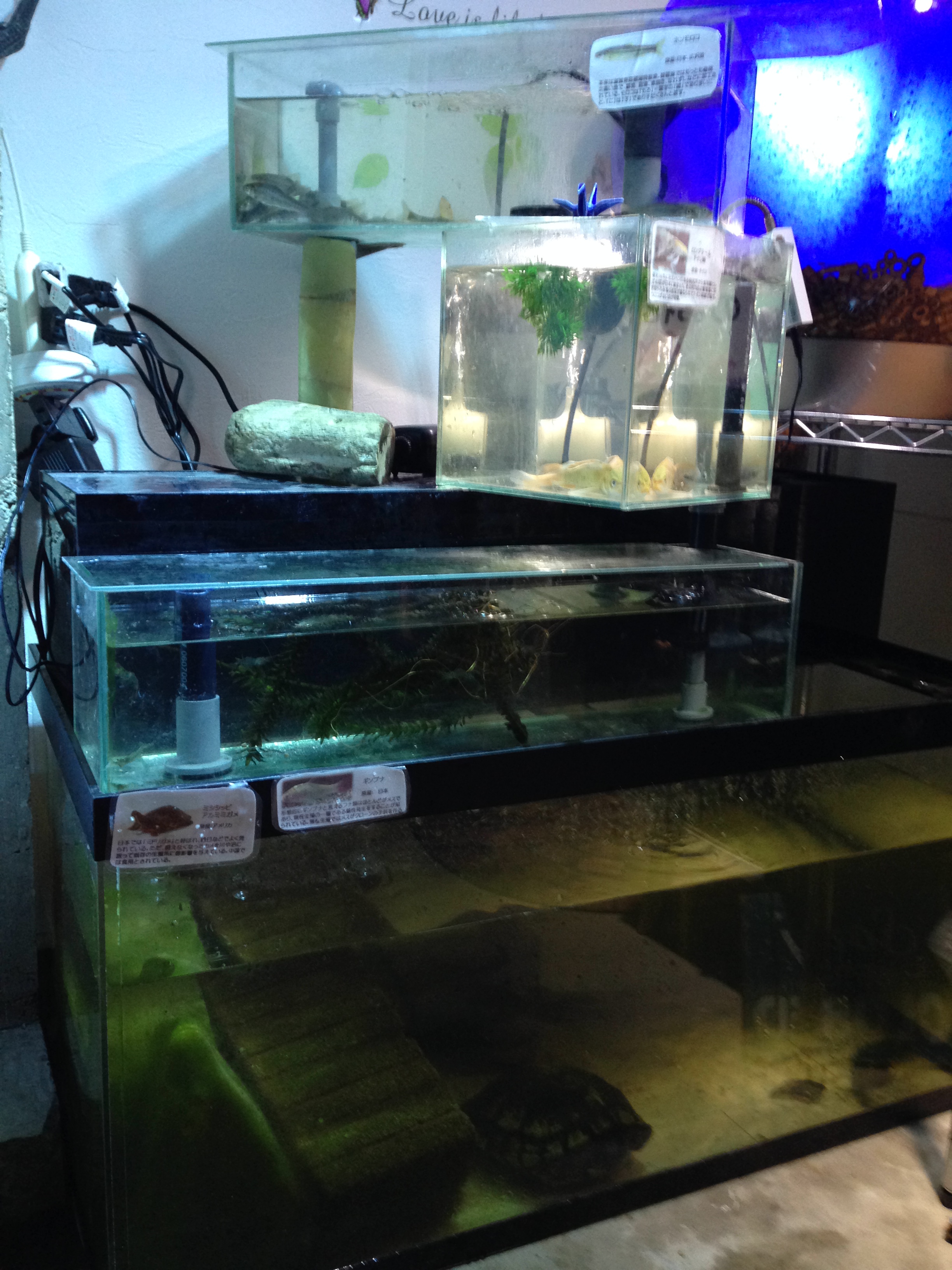 ただ水槽を重ねるのは面白くないので、奇抜な形で水槽を置いてみました。