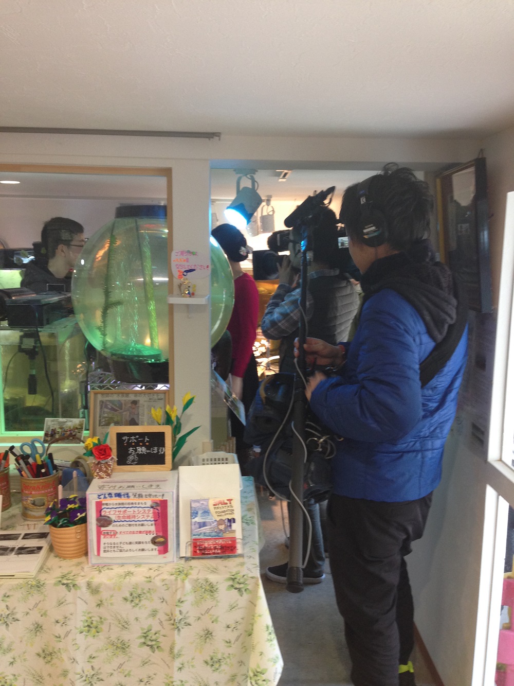 内容はテレビでご確認いただきたいと思いますが、ちょうど一年前に集会所に水族館があったころに一度NHK京都さんに取材いただきました。