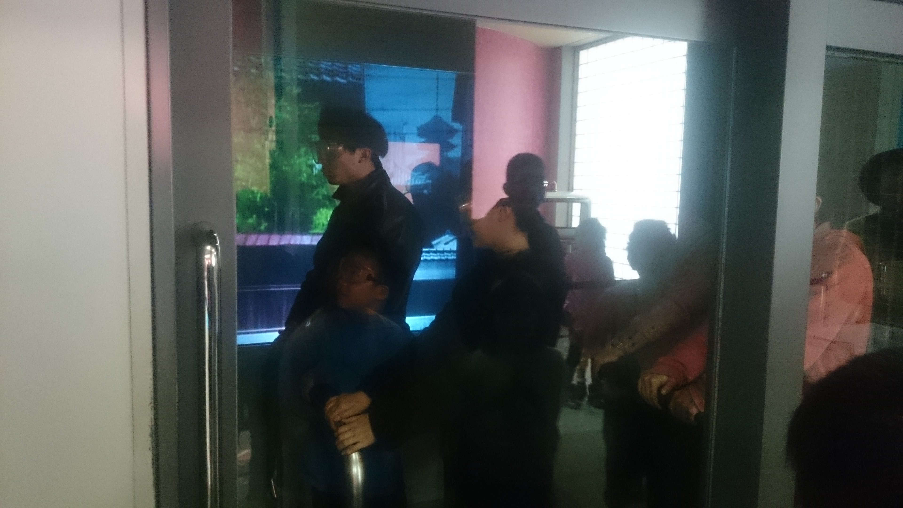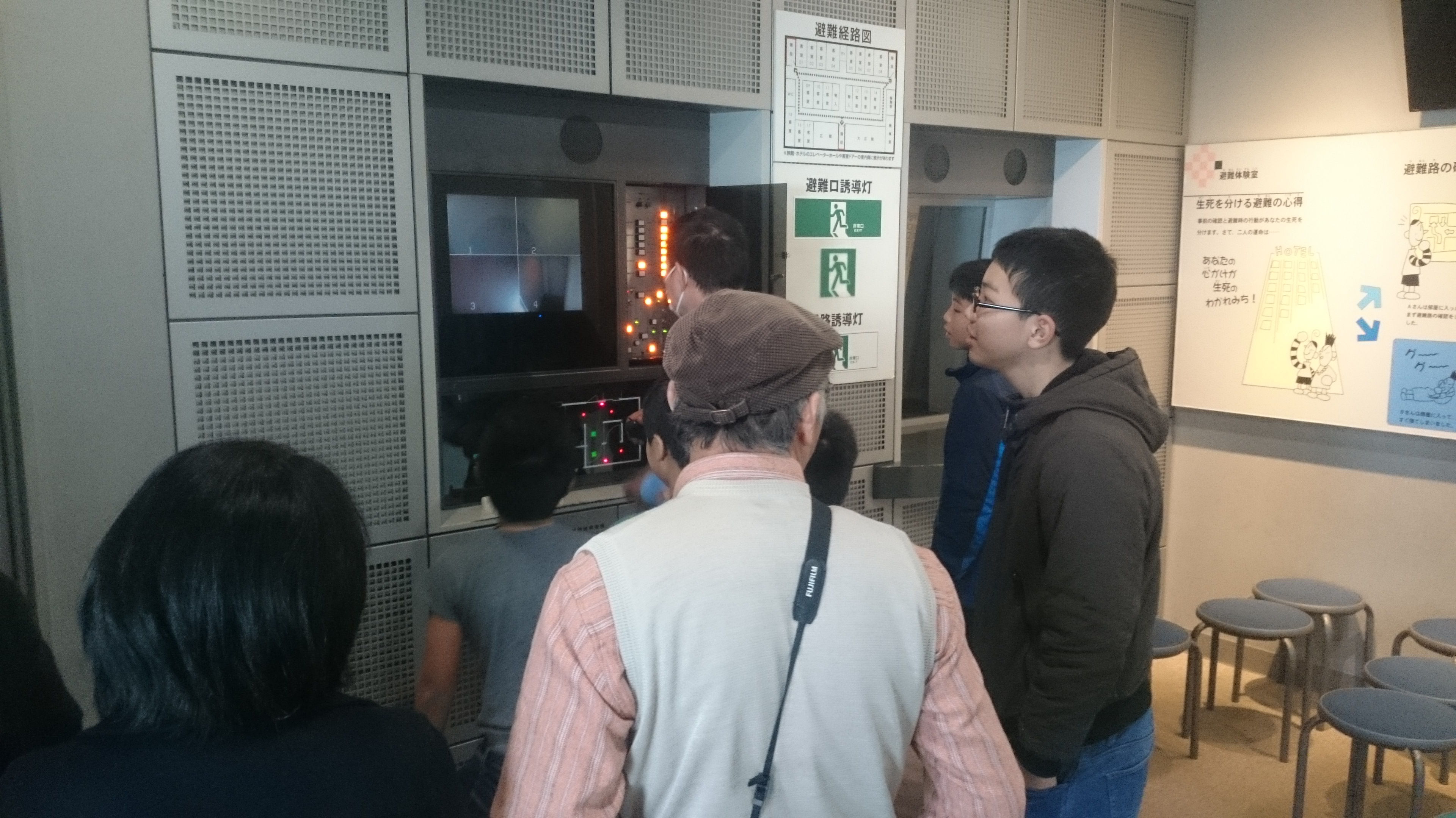 実際に煙が充満している部屋へ移り、「非常口」を目当てに体験できる場所です。