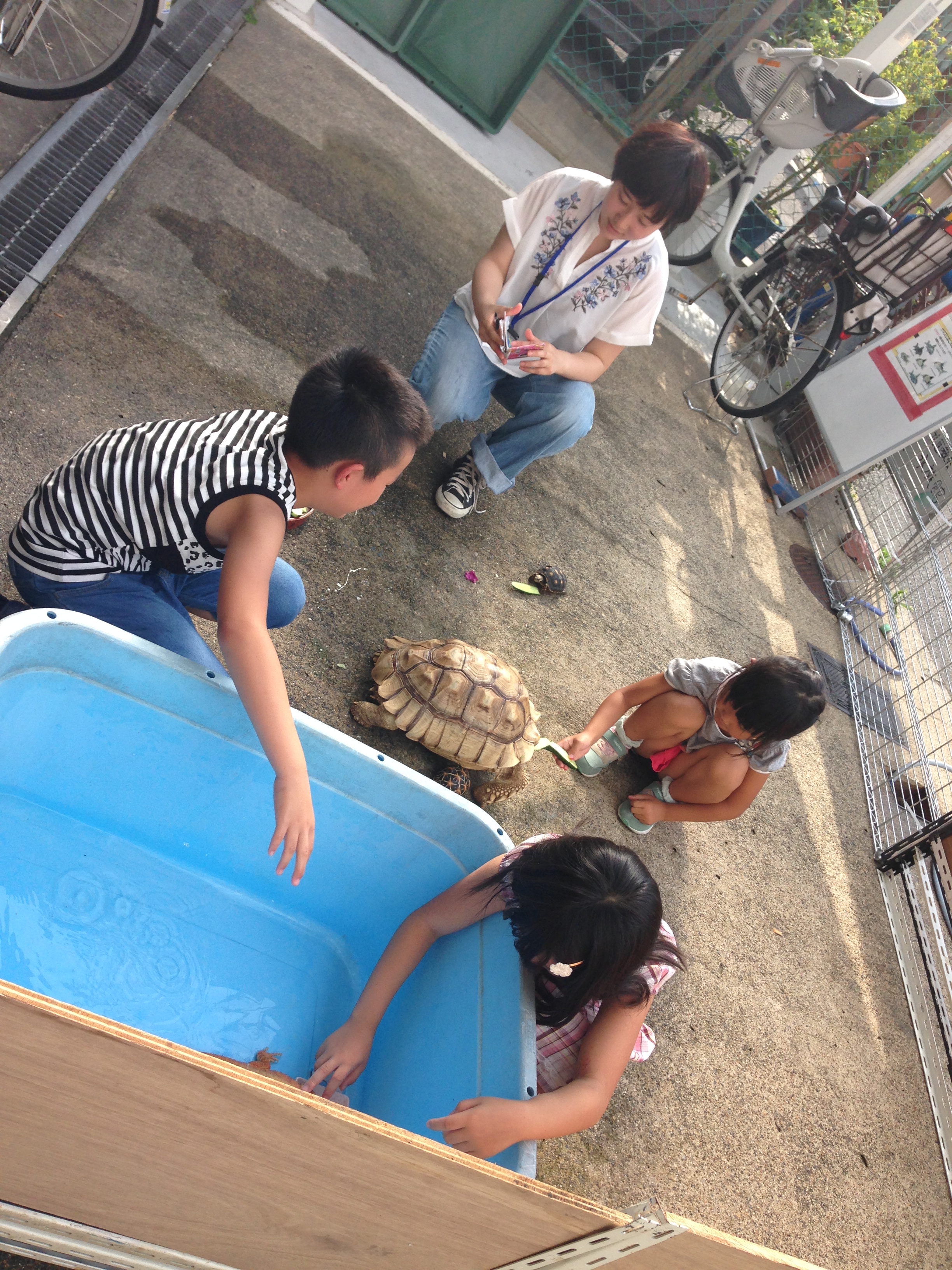 また、水族館でカメと触れ合い、とれも喜んでいました。