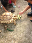 天気が良かったのでリクガメ達を外に出したところ、エサもバクバク食べました。