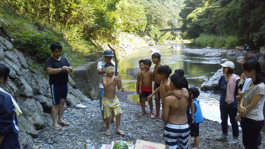 毎年恒例のスイカ割り!