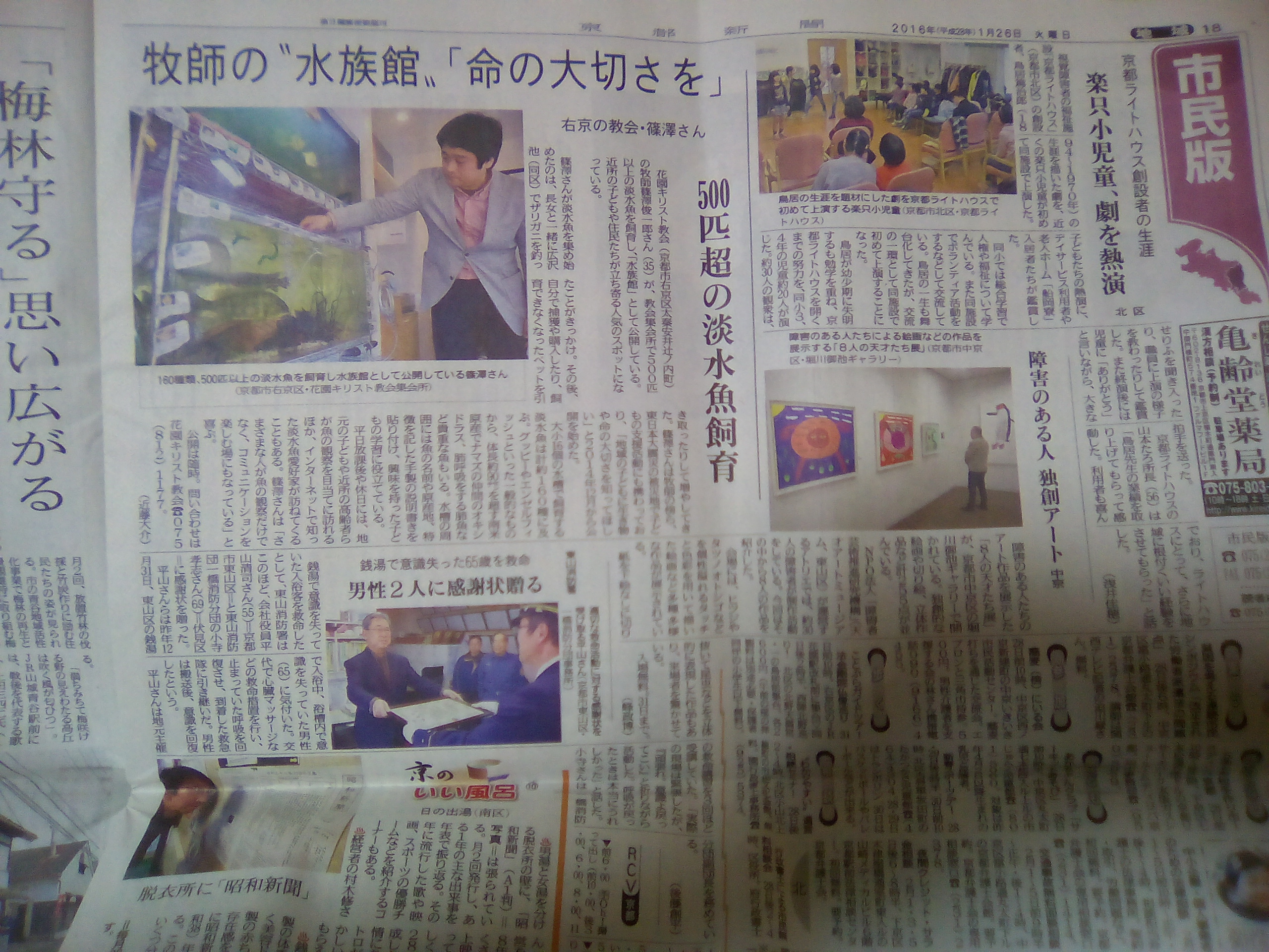 というのは、一昨年の12月に地域雑誌に花園教会水族館が載った事を皮切りに、