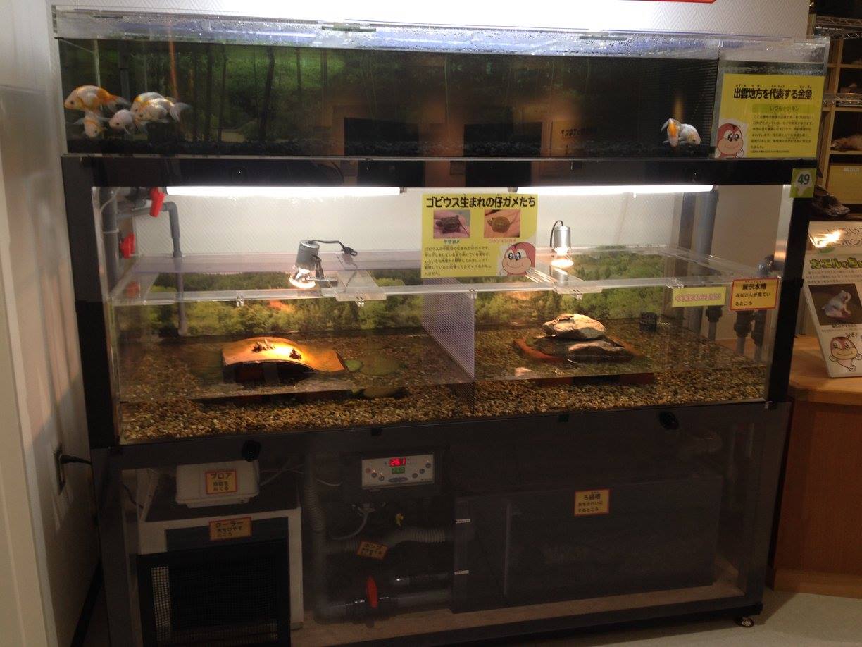 右の水槽写真は真ん中が、カメ水槽。珍しい。
