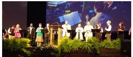 弦楽器が加わったバンドと、10人ほどのソリストたちに合唱が加わった音楽は迫力と美しさで、主の賛美にふさわしいものでした。