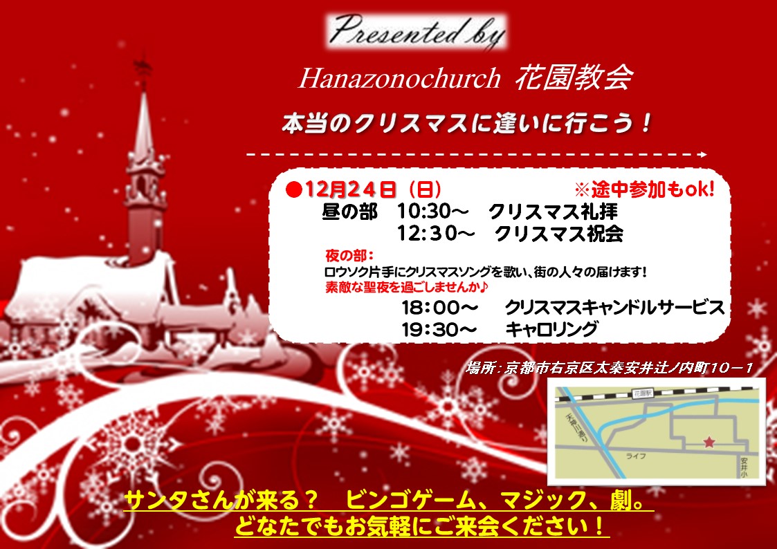 明日はどうぞ花園教会のクリスマスにおいでください♬
