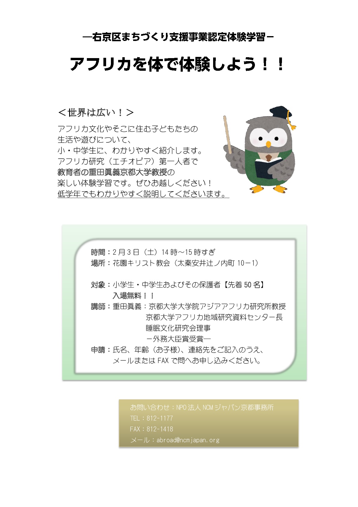 NPO法人NCMジャパン京都事務所主催 後援:京都市右京区