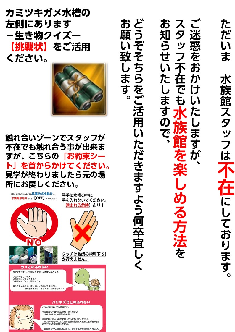 スタッフ不在の際は勝手に生き物クイズやっちゃってください!